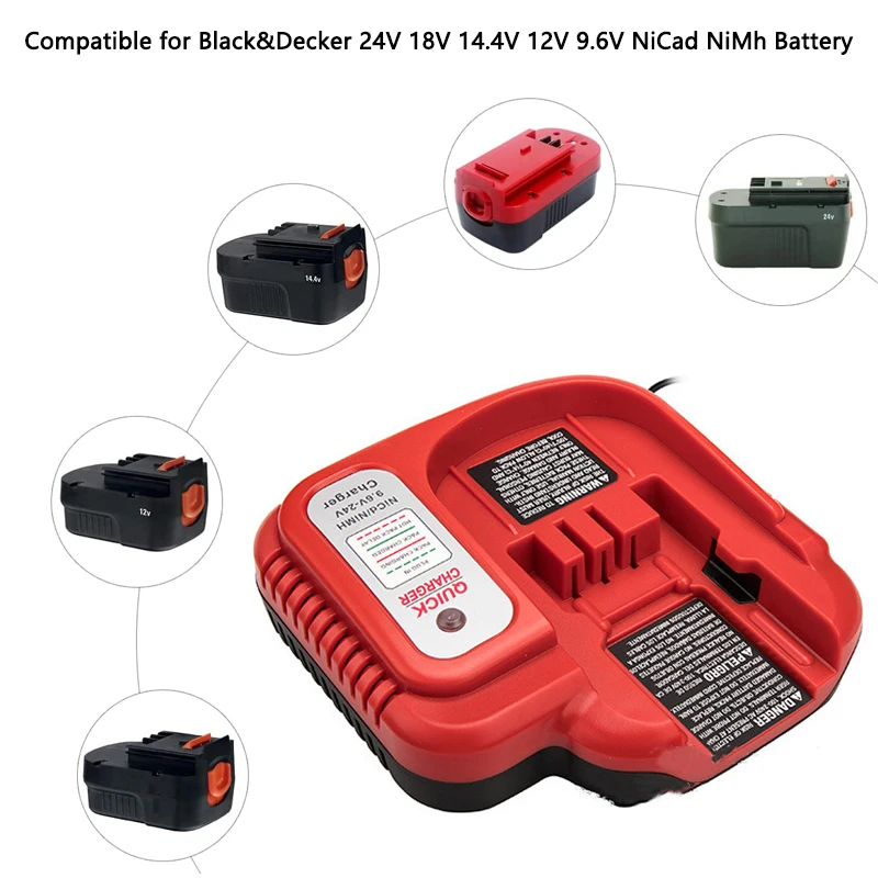 Chargeur de remplacement pour batterie Black & Decker NiCD NiMH 18V 14.4V 12V 9.6V, accessoires d’outils de chargeur de batterie sûrs et rapidesChargeur de remplacement pour batterie Black & Decker NiCD NiMH 18V 14.4V 12V 9.6V, accessoires d’outils de chargeur de batterie sûrs et rapides