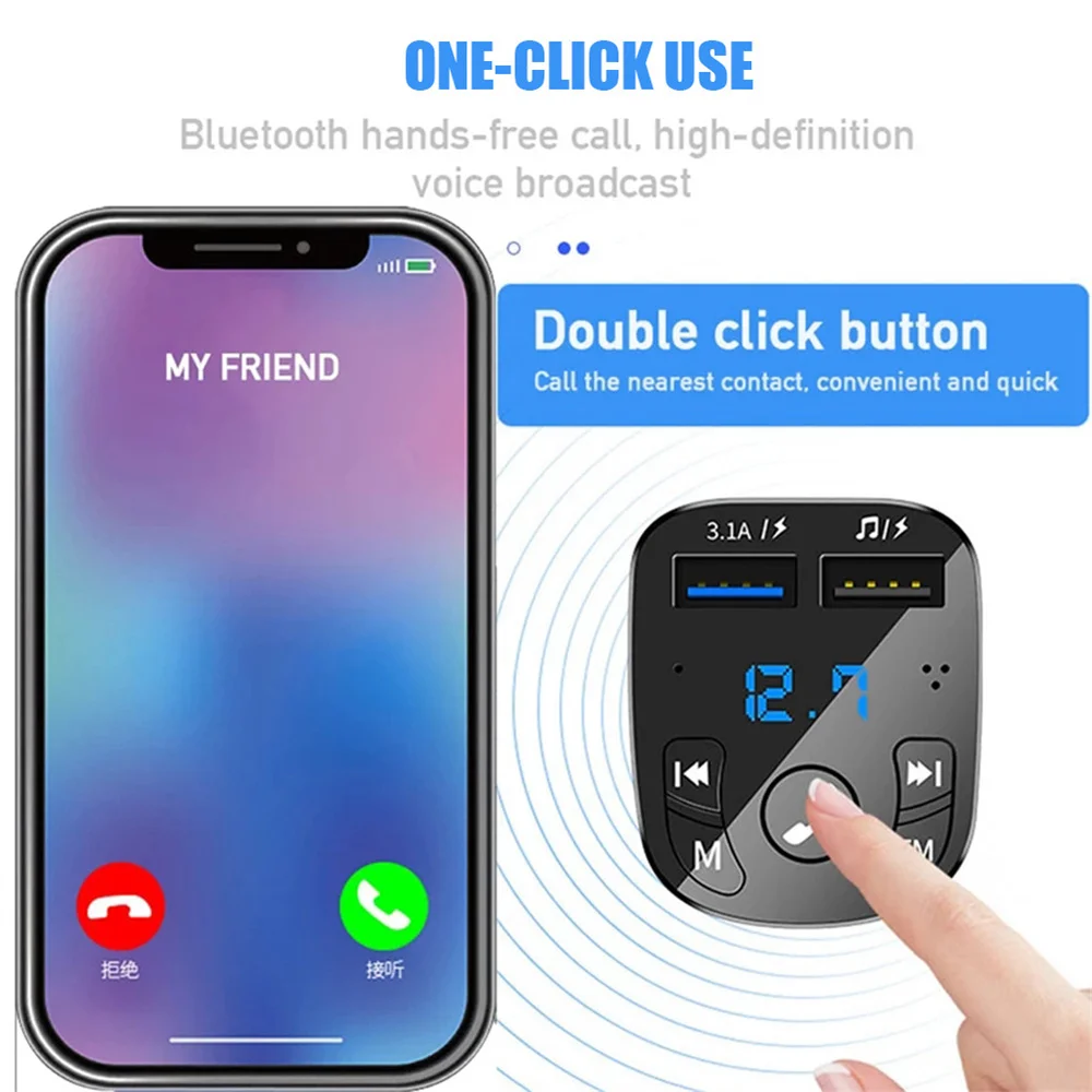 La technologie de transmission sans fil FM pleine fréquence peut lire directement des fichiers audio sur les téléphones mobiles/disques U Bluetooth.