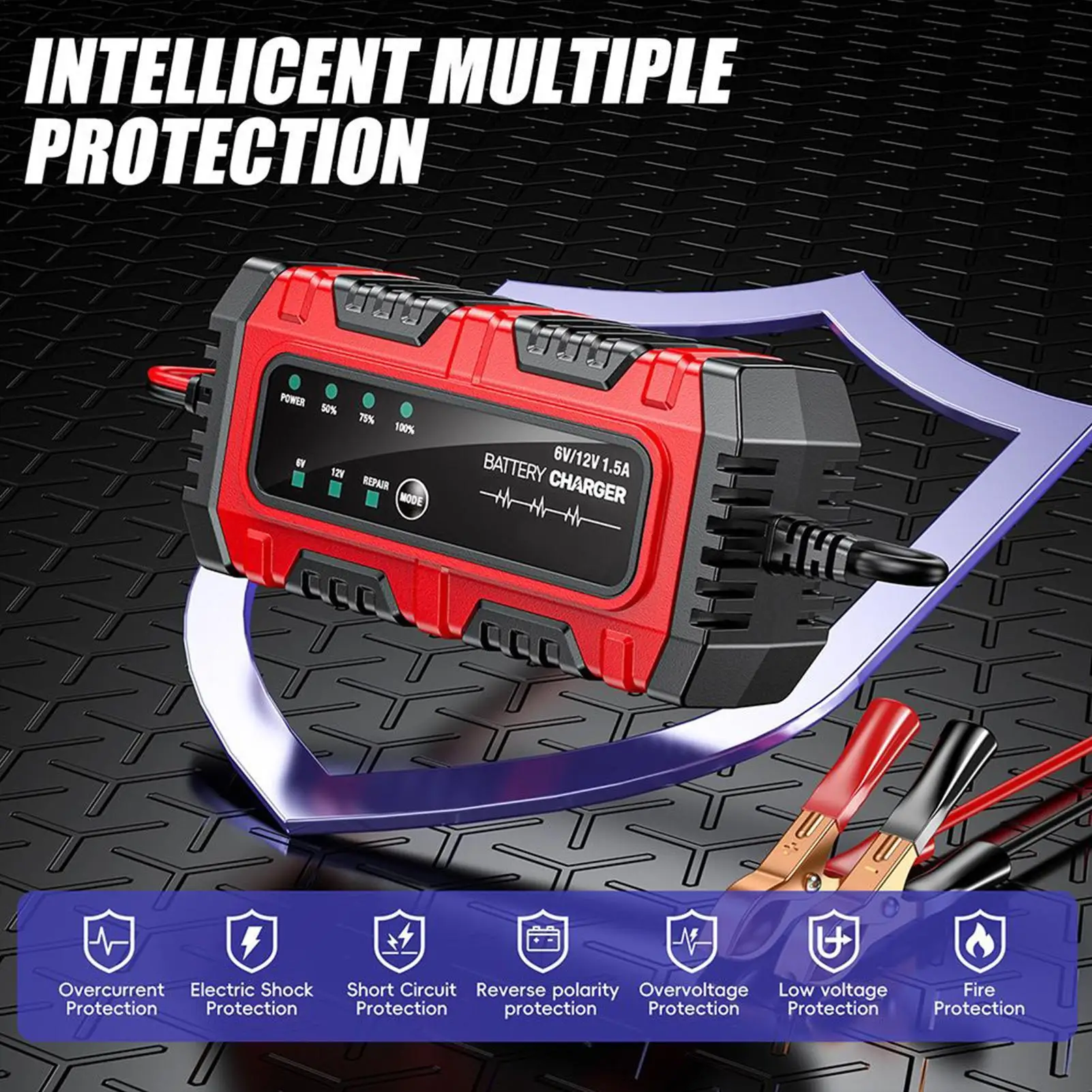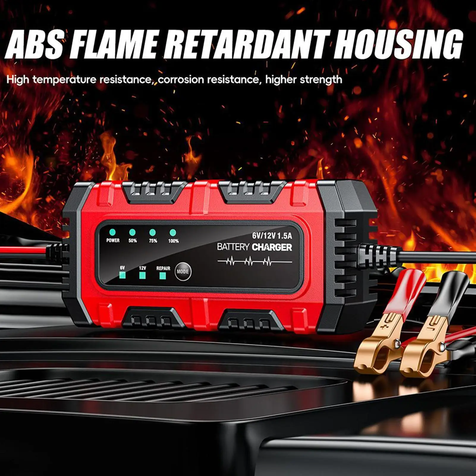 chargeur mainteneur batterie intelligent automatique 6V 12V courant 1 5 ampere compact robuste antichoc boitier ABS