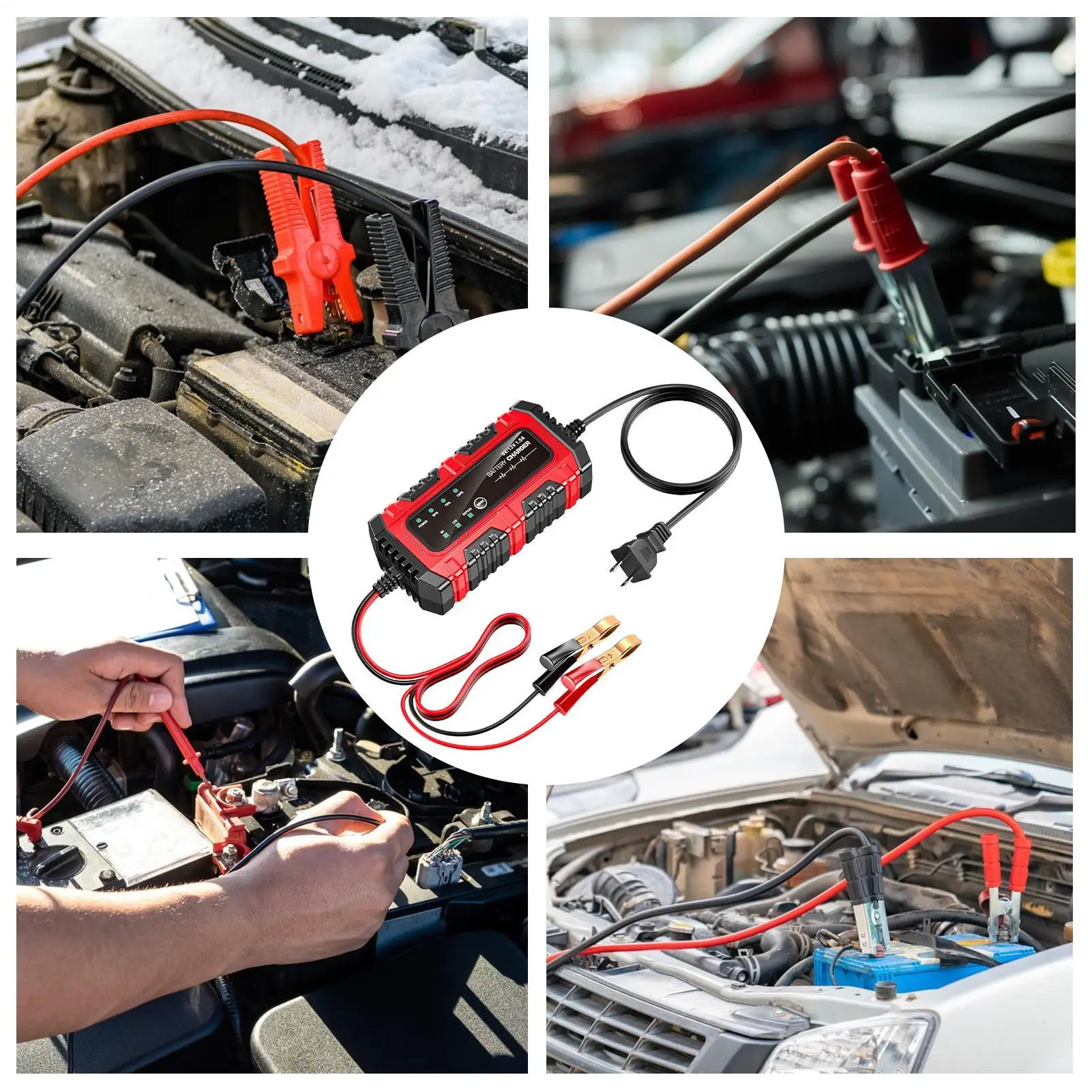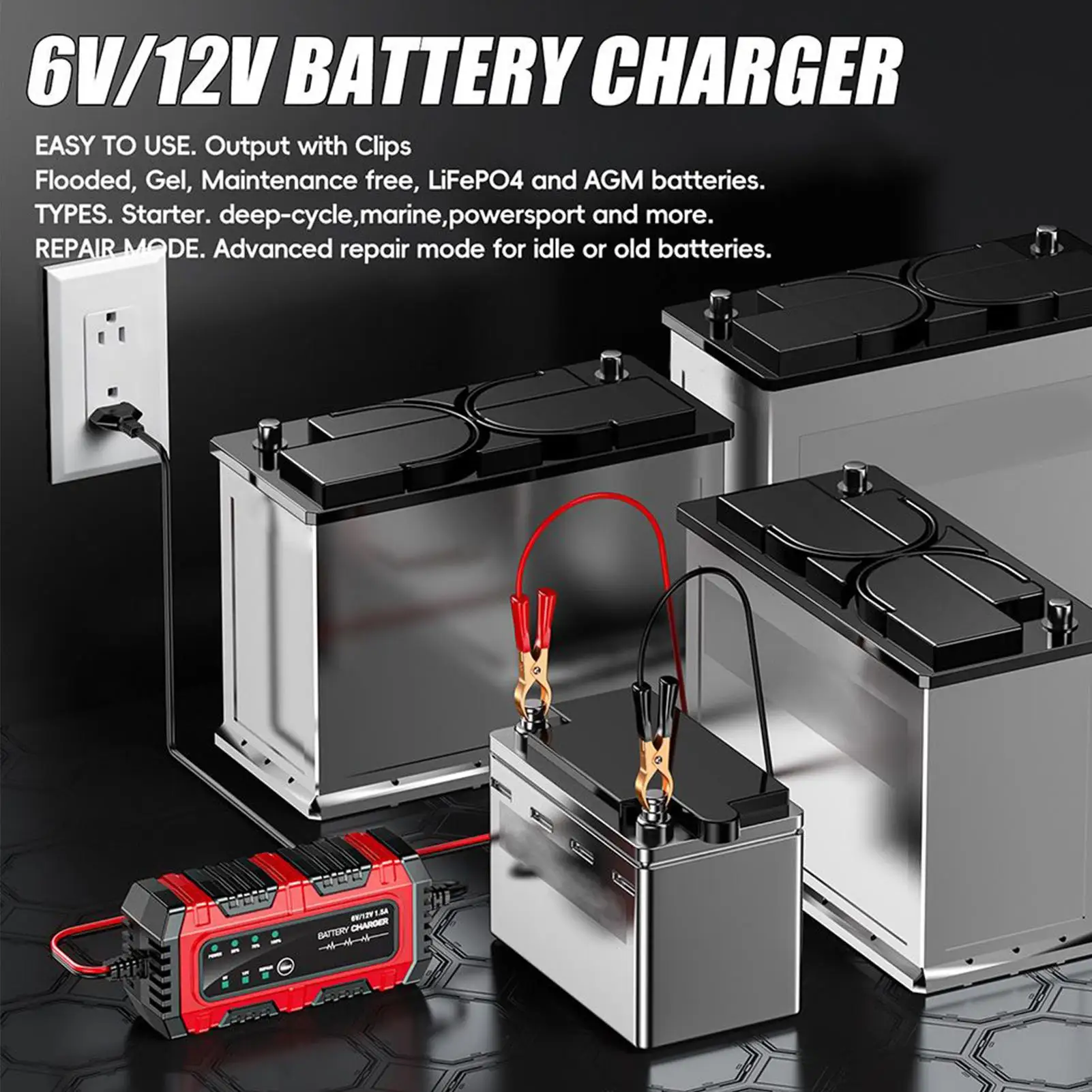 5. Détection intelligente de tension : ce chargeur de maintenance de batterie identifie automatiquement la tension de la batterie et ajusta son profil de charge intelligent, offrant des performances de charge fiables qui empêcher le surderchar et améliore la santé de la batterie.