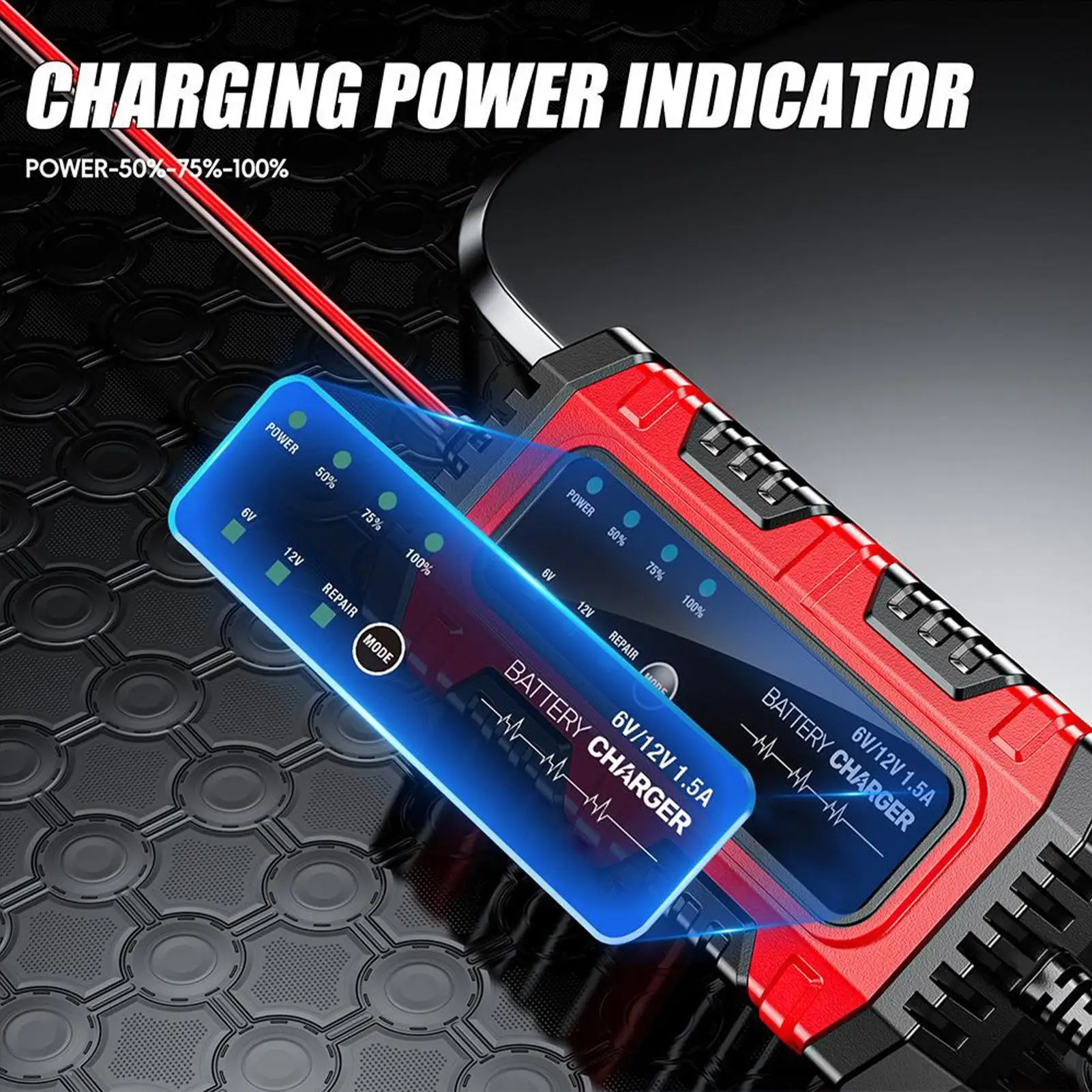 4. Technologie de restauration d’impulsions : Le chargeur de batterie de moto et les emploi du maintien Technologie de restauration d’impulsion pour rajeunir les piles enquête, améliorant l’efficacité pour les amateurs qui dirige ses vélos pendant les problèmes de démarrage fréquents de l’inctivité