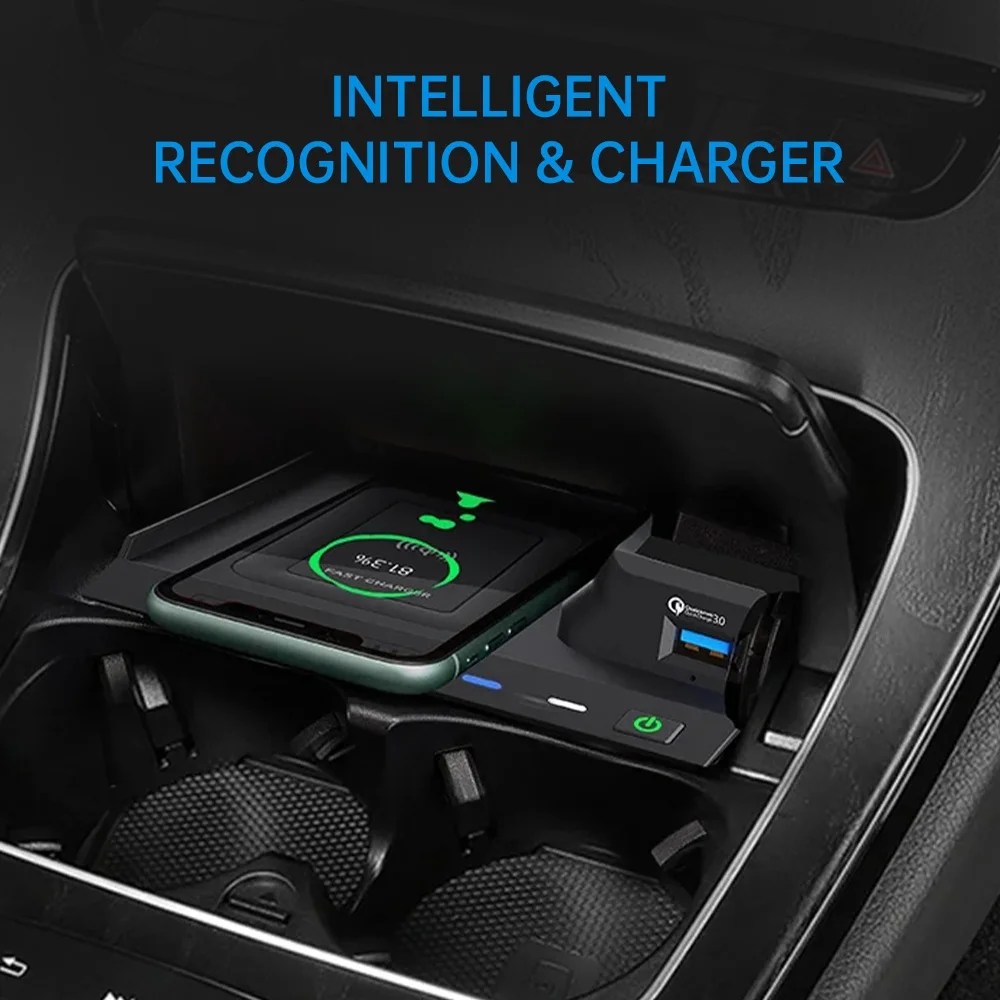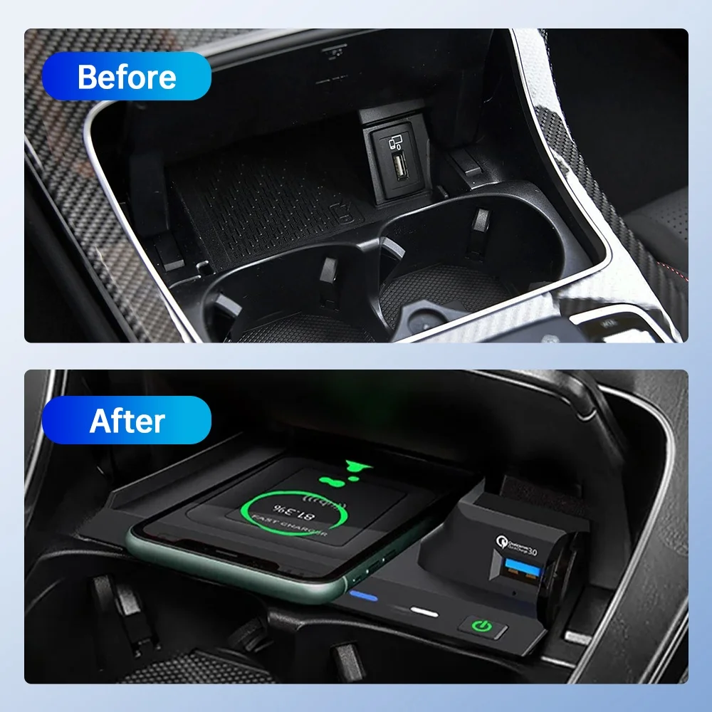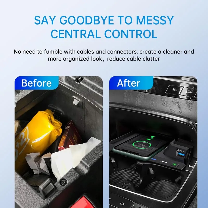 "Cet adaptateur de charge sans fil est vraiment top pour ma Mercedes GLC. L'installation a été super facile et il se blend parfaitement dans la console centrale. La charge est rapide et fiable, je n'ai eu aucun problème. Le seul petit bémol est que le connecteur USB est un peu court, mais ça n'affecte pas du tout l'utilisation. Dans l'ensemble, c'est un excellent achat qui apporte une vraie valeur ajoutée à ma voiture."