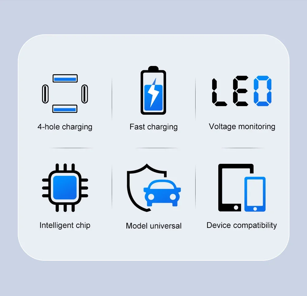 Équipé de 4 ports, ce chargeur de voiture vous permet de charger jusqu’à 4 appareils simultanément, de sorte que vous n’avez pas à attendre votre tour pour charger votre téléphone. Avec la technologie de charge rapide PD, il peut charger votre téléphone jusqu’à 50% plus rapidement que les chargeurs traditionnels, ce qui signifie que vous pouvez passer moins de temps à charger et plus de temps en déplacement.