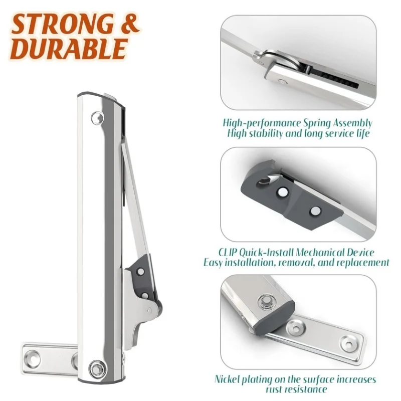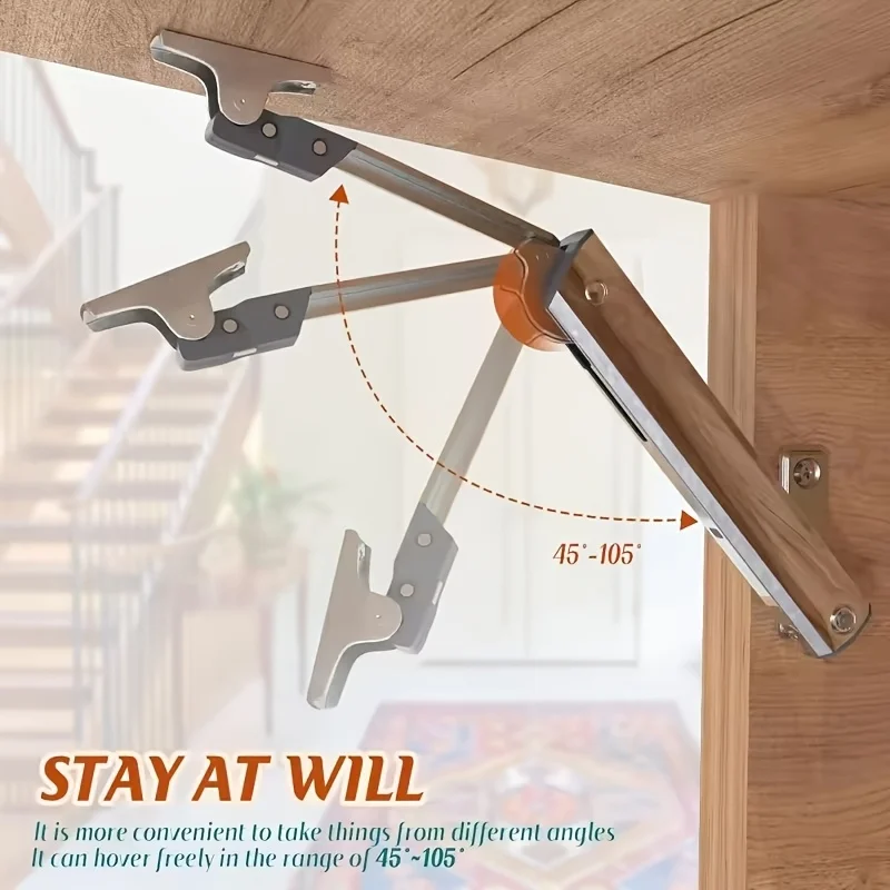 Il peut s’arrêter à n’importe quel endroit entre 45 et 105 degrés, et lorsque vous le fermez à moins de 45 degrés, il vous aidera à fermer la porte lentement et automatiquement. Avec ces accessoires de meubles, vous pouvez sortir des objets des armoires aériennes en toute sécurité et plus facilement.
