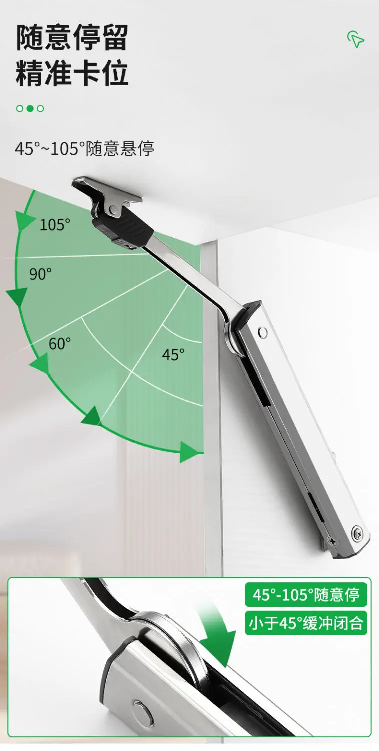 - Application: Kitchen upward door hinge, hydraulic door support, cabinet hinge soft closing