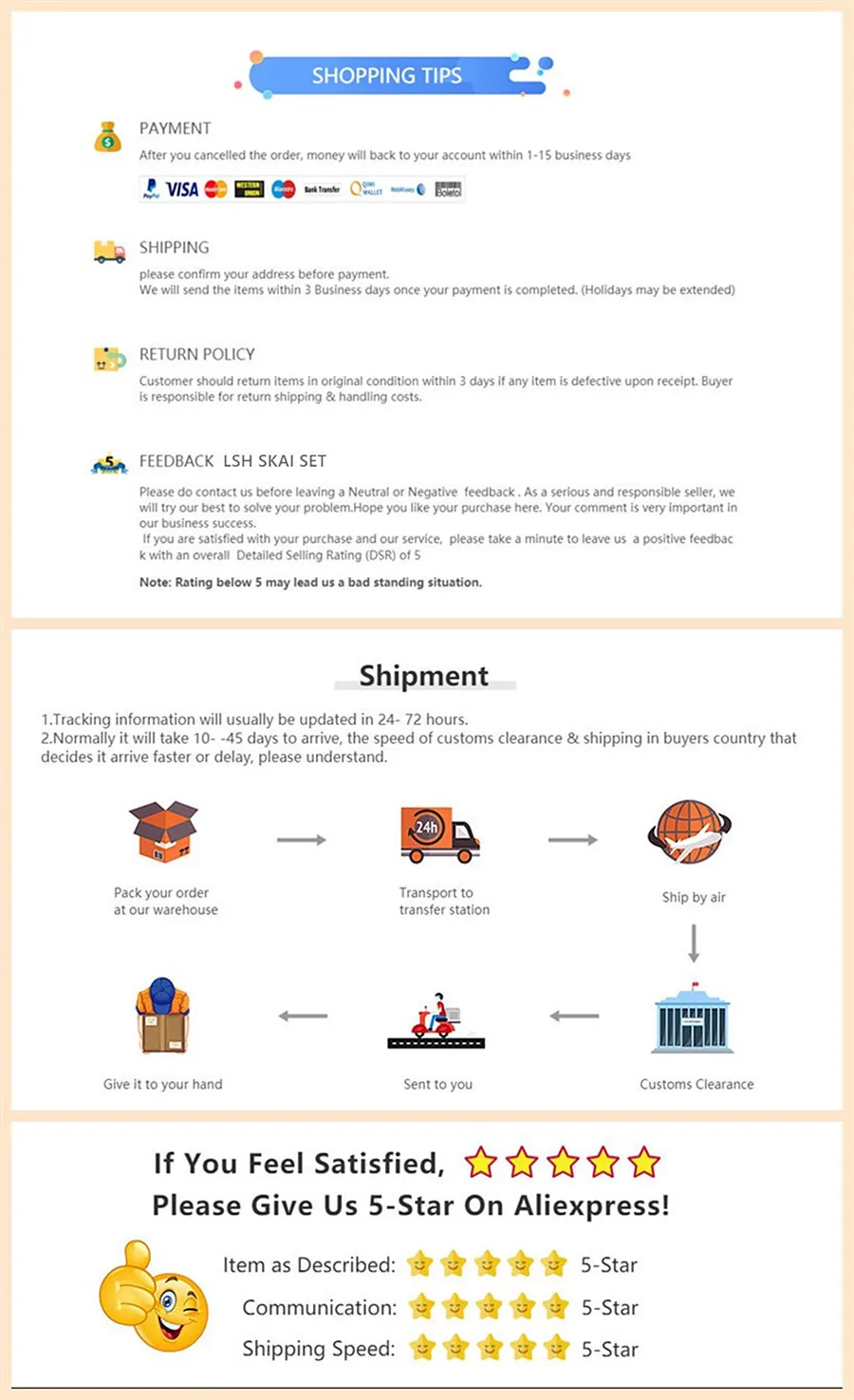 3.LSH SKAI SET Tous les produits ne contiennent pas les taxes d’importation, si n’importe quel, veuillez arranger le paiement des taxes douanières dans le temps pour éviter affecter le transport.