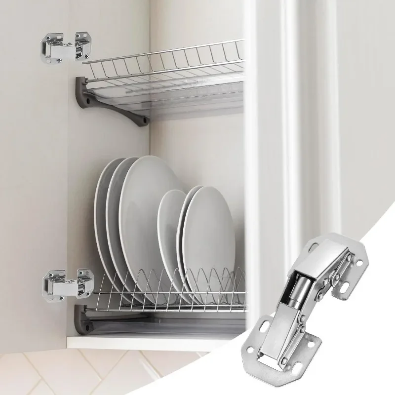 Charnières d’armoire en acier à 90 degrés, sans trou de perçage, tampon hydraulique, charnières d’armoire de cuisine, quincaillerie de meubles, 1/10 pièces