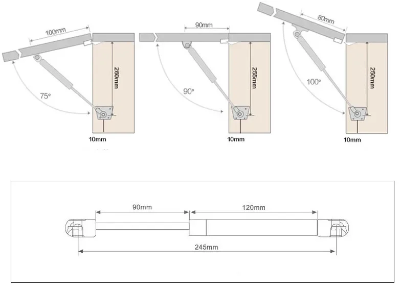 Charnières hydrauliques 40/60/80/100/120/150N, Support de levage de porte pour matériel de meubles en bois, armoire de cuisine, ressort pneumatique à gaz