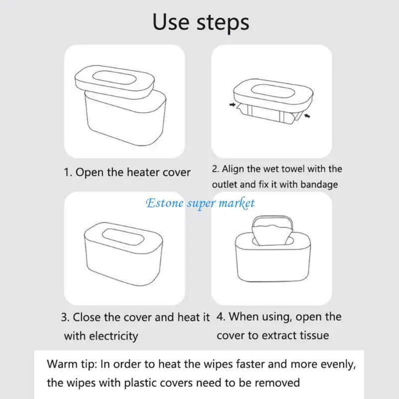 Afin que les lingettes humides chauffent plus rapidement et plus uniformément, retirez le couvercle des lingettes humides avec couvercle en plastique.