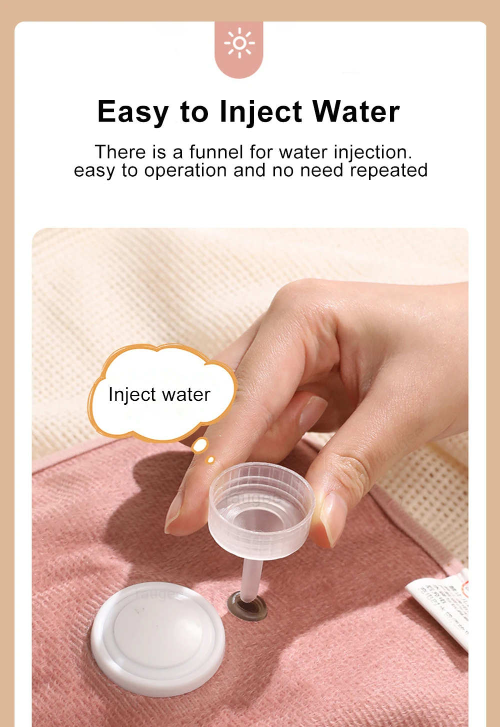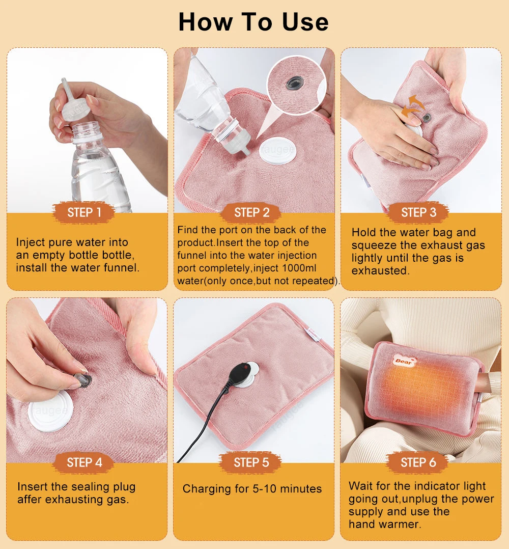 2.Veuillez ne pas touchez le sac d’eau chaude directement pour longtemps pour empêcher les brûlures. NON pour bébé seul.