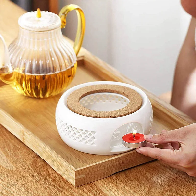 MATÉRIAUX DE HAUTE QUALITÉ: La porcelaine chaude est faite de porcelaine blanche de haute qualité et exquise, très solide et durable.Le tampon en liège peut empêcher la théière avec le réchaud d’entrer en collision avec le réchaud, ce qui peut bien protéger votre théière.