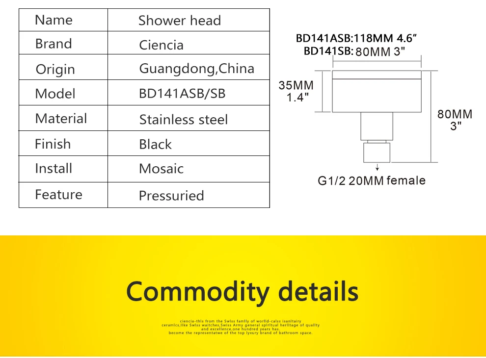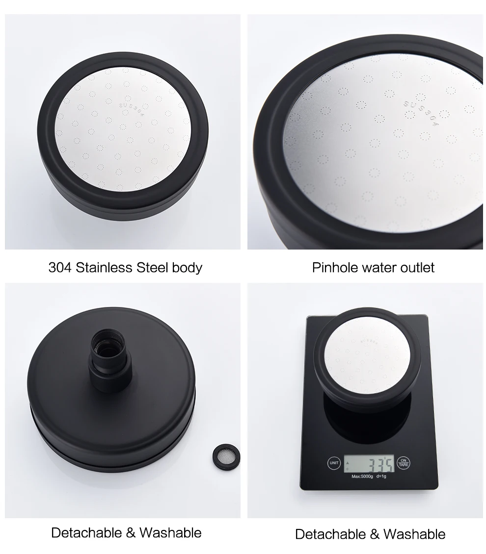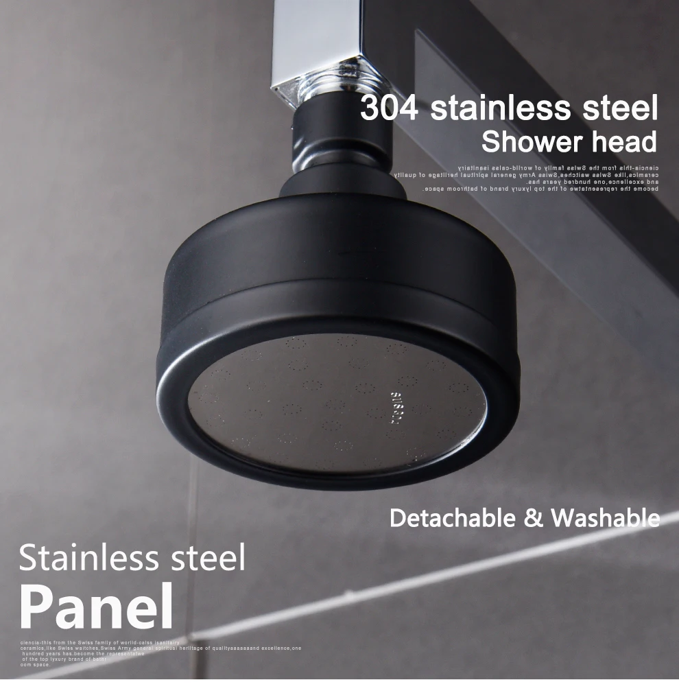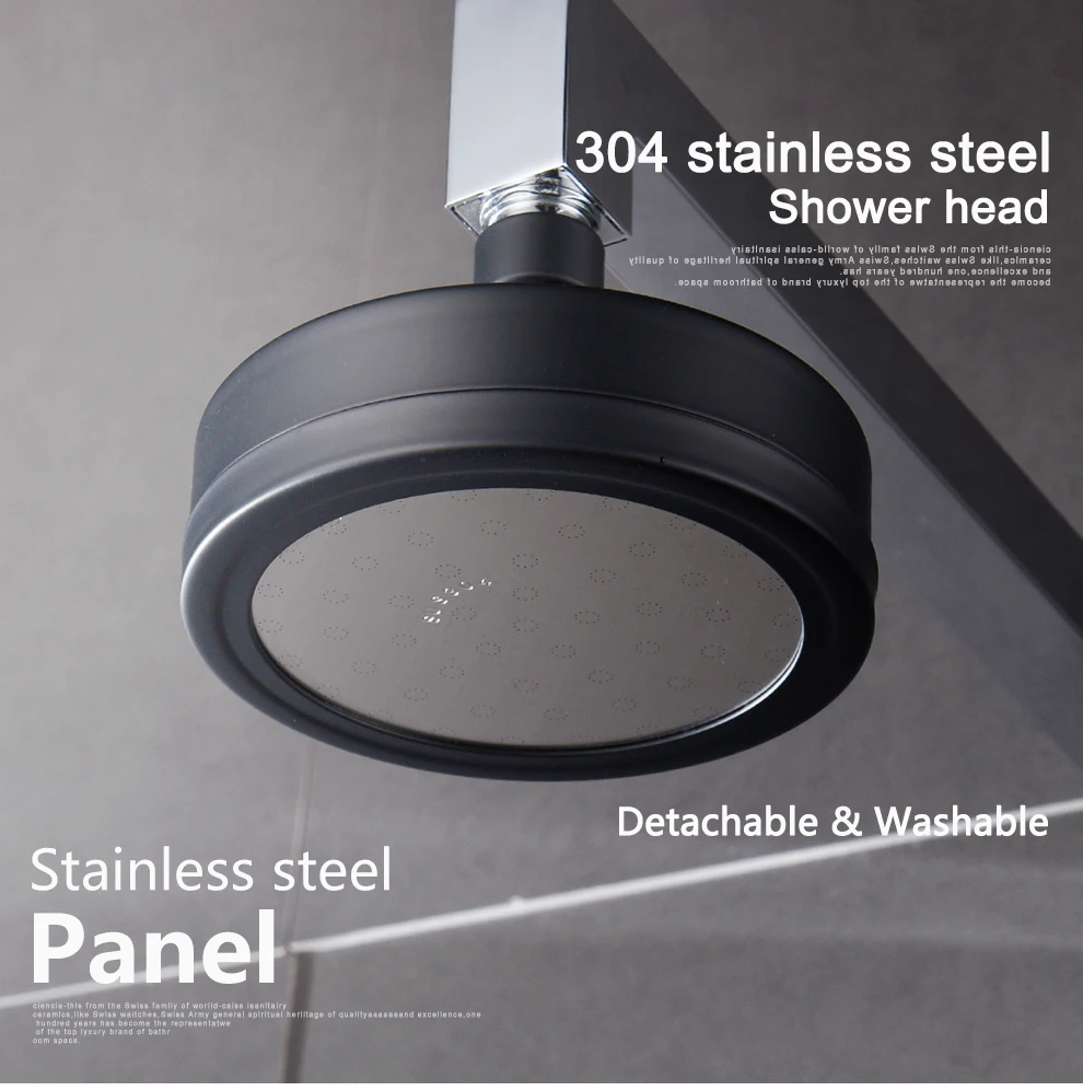 Cistud304-Pommeau de Douche en Acier Inoxydable avec Poignées Noires, Haute Pression et Pluie Dense, Montage MuralCistud304-Pommeau de Douche en Acier Inoxydable avec Poignées Noires, Haute Pression et Pluie Dense, Montage Mural
