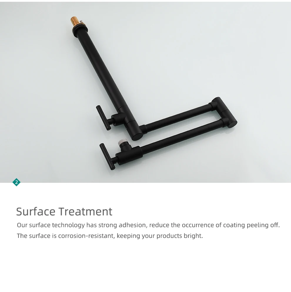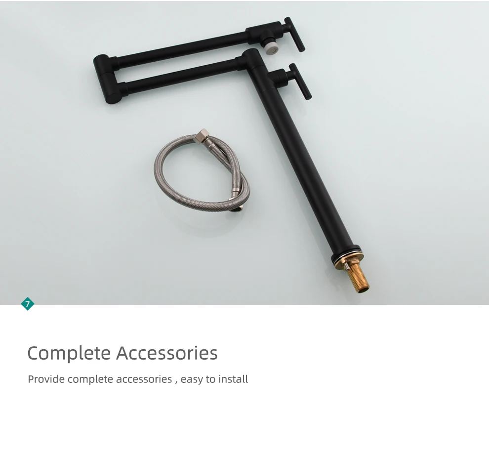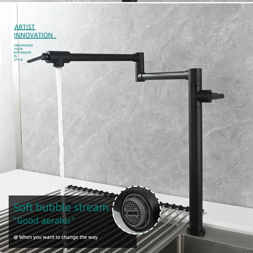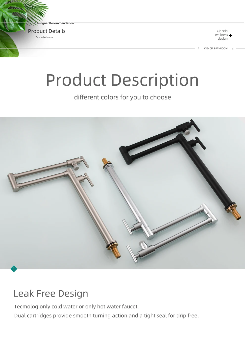 CistudBrass-Remplisseur de pot pliable et extensible, deux poignées, montage sur pont, cuisine, eau froide uniquement