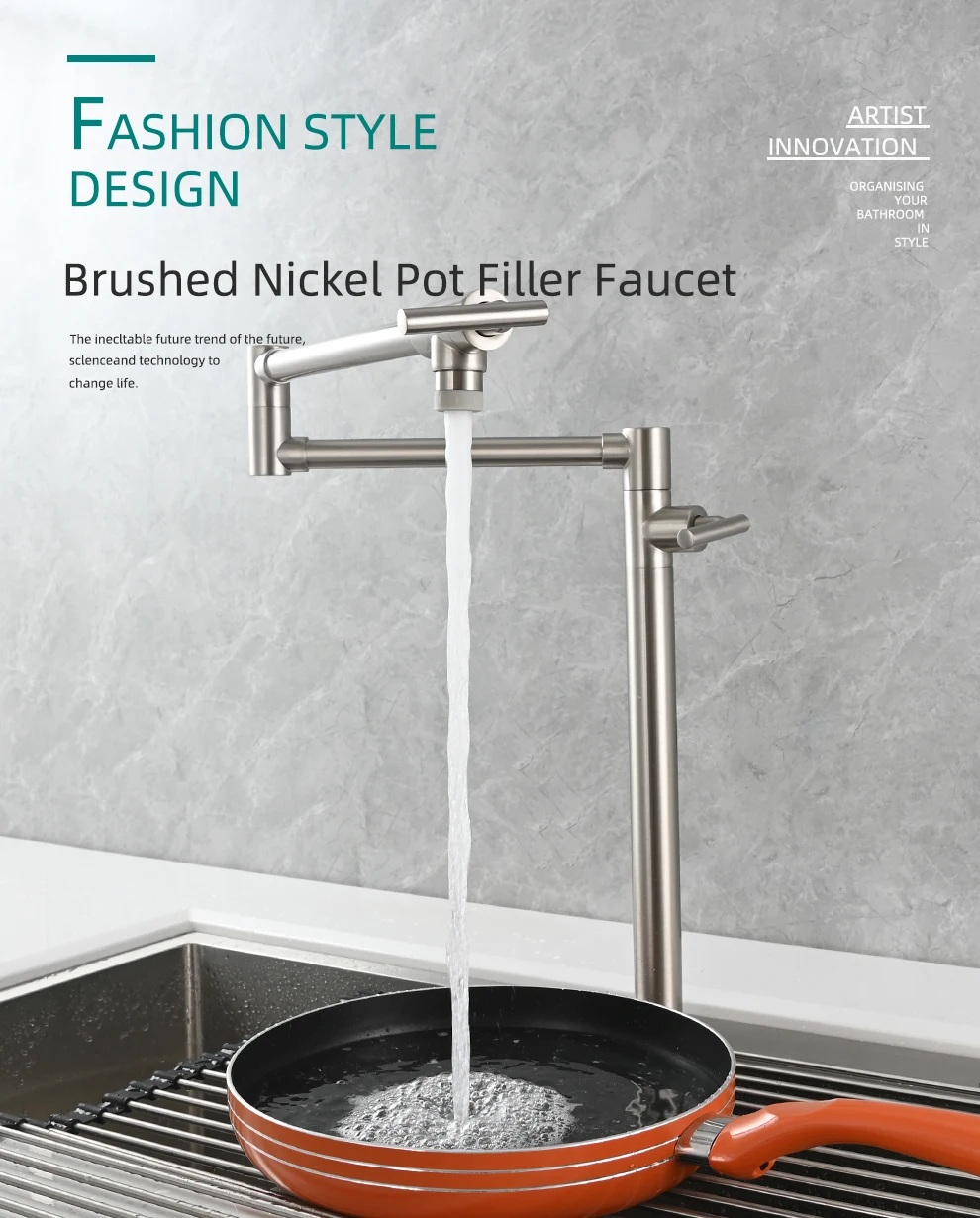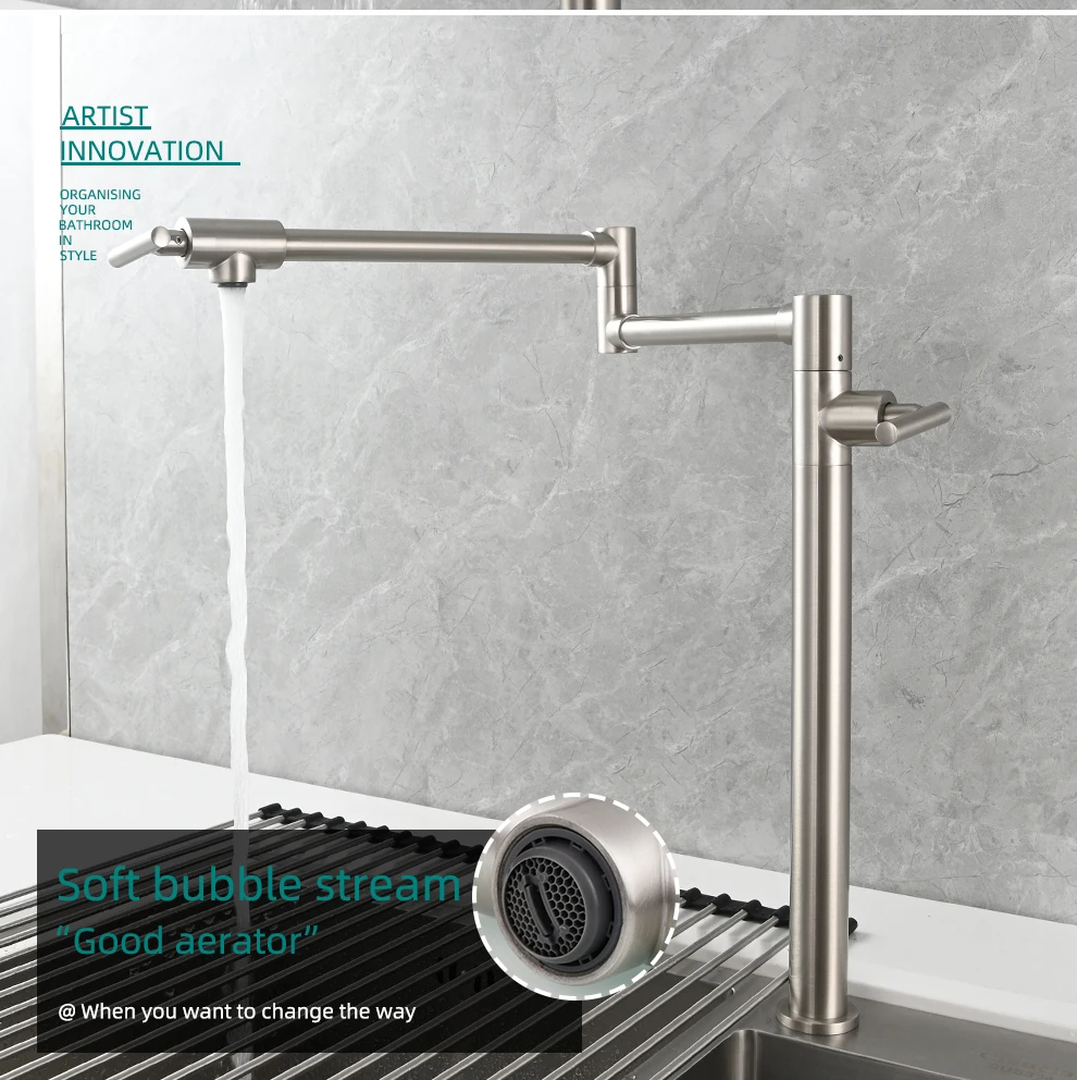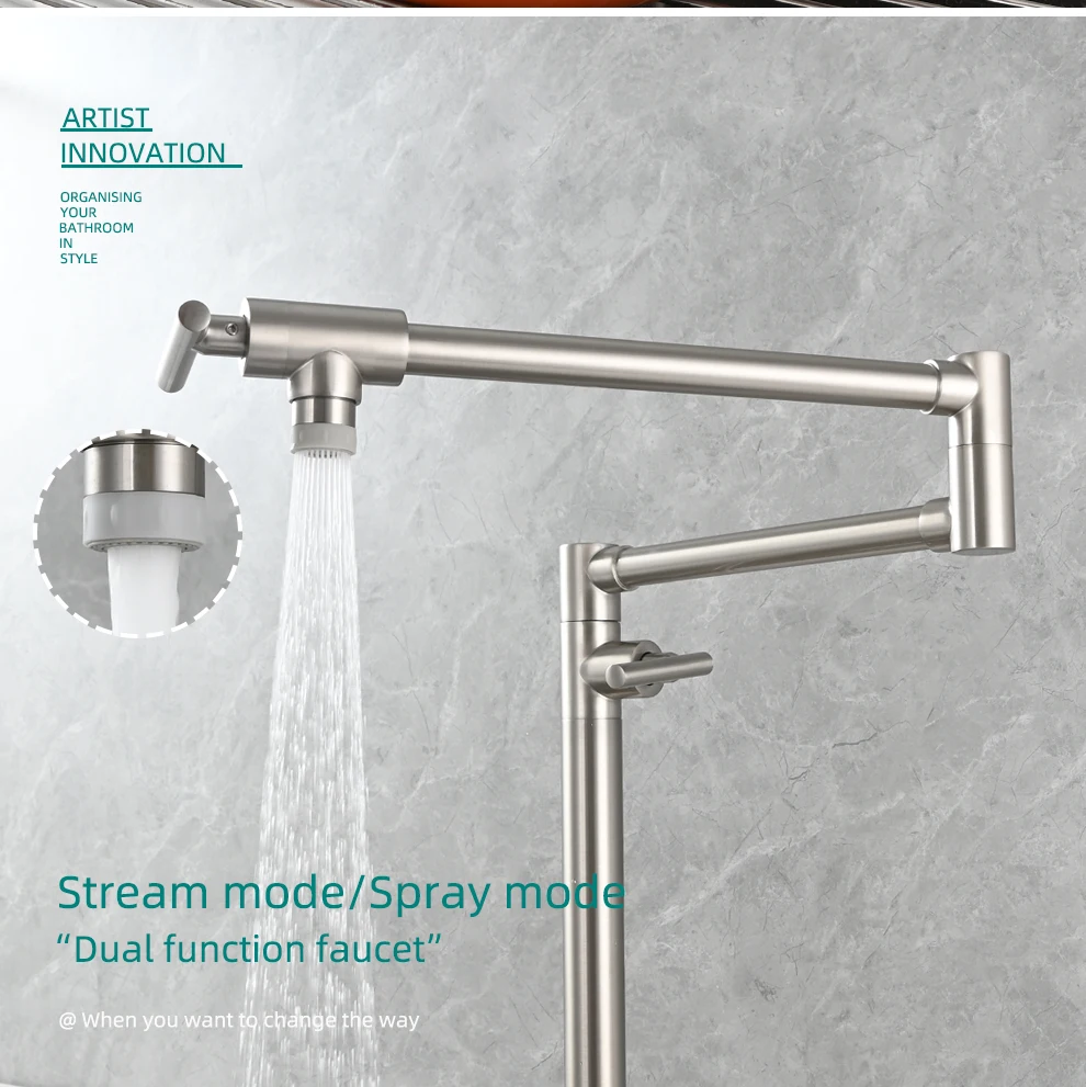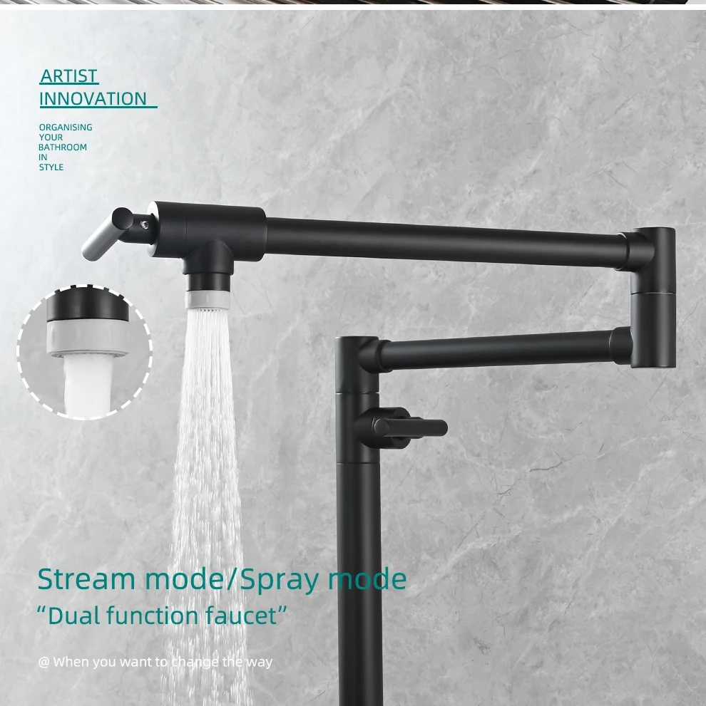 CistudBrass-Remplisseur de pot pliable et extensible, deux poignées, montage sur pont, cuisine, eau froide uniquement