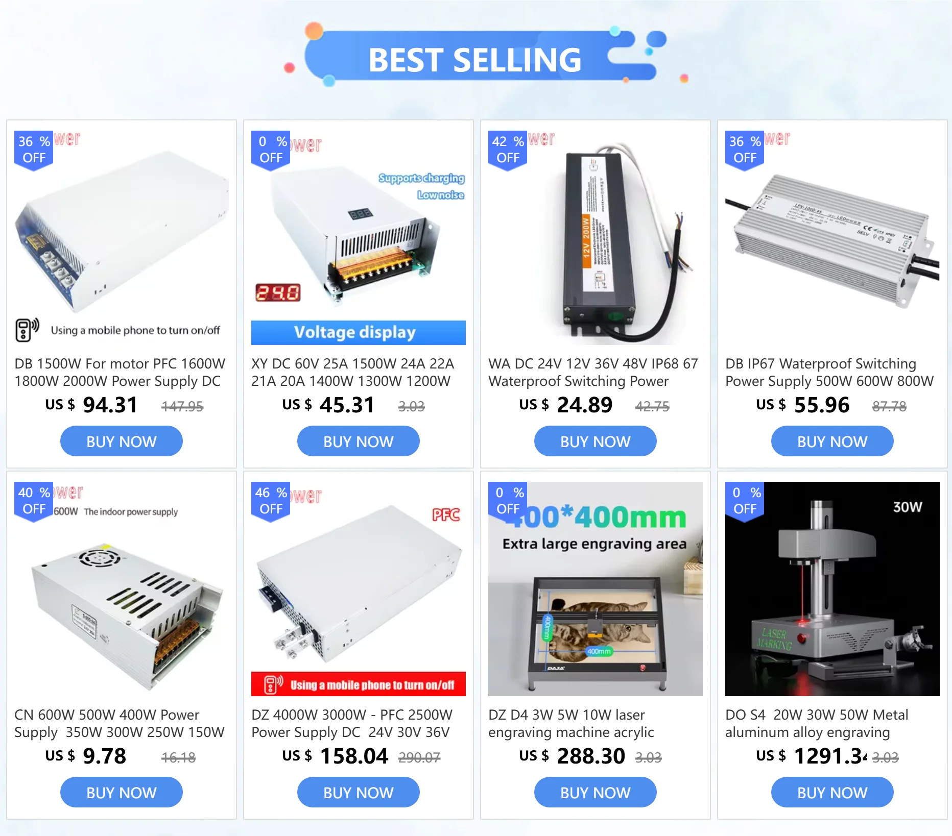 Notre boutique dispose d’une alimentation 5 V 12 V 24 V 36 V 48 V avec différentes puissances.Bienvenue à consulter