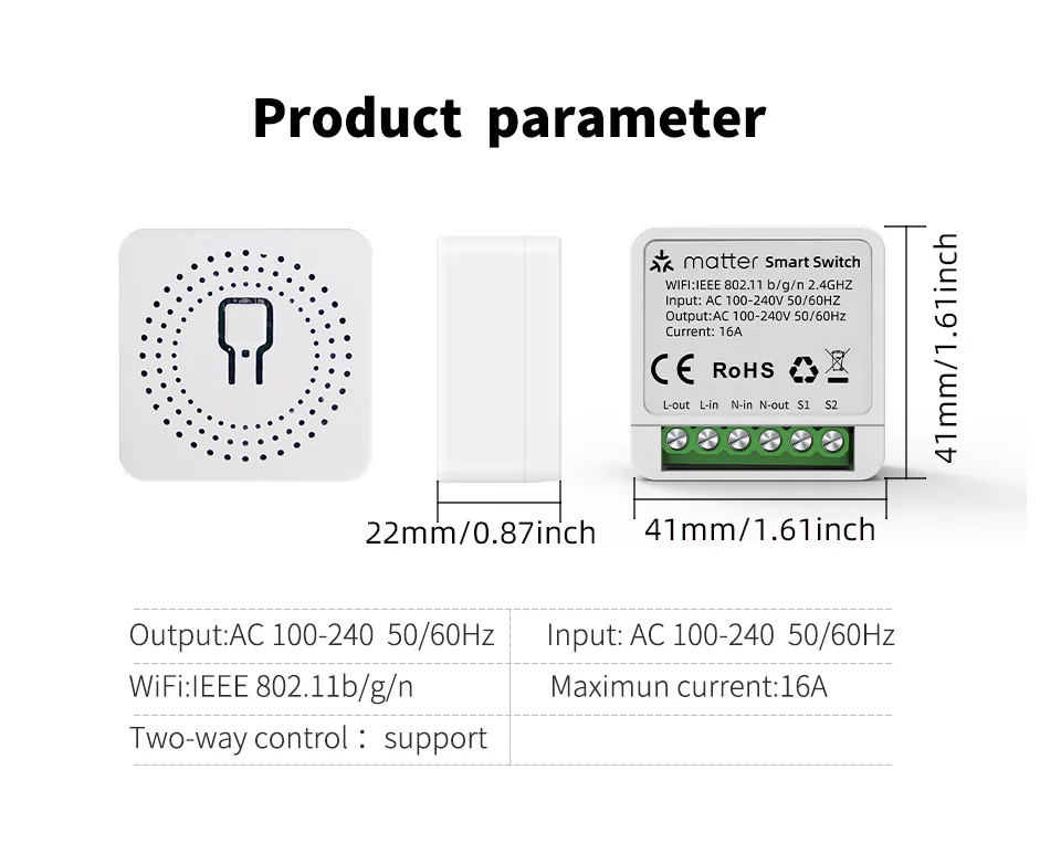 【Facile à installer】Ce mini interrupteur d’éclairage intelligent a une taille compacte de 40mm x 40mm x 20mm et peut être installé dans la plupart des boîtes encastrées standard. Remarque: Veuillez vous assurer que la profondeur de la boîte est supérieure à la profondeur de l’interrupteur et à la hauteur du relais.