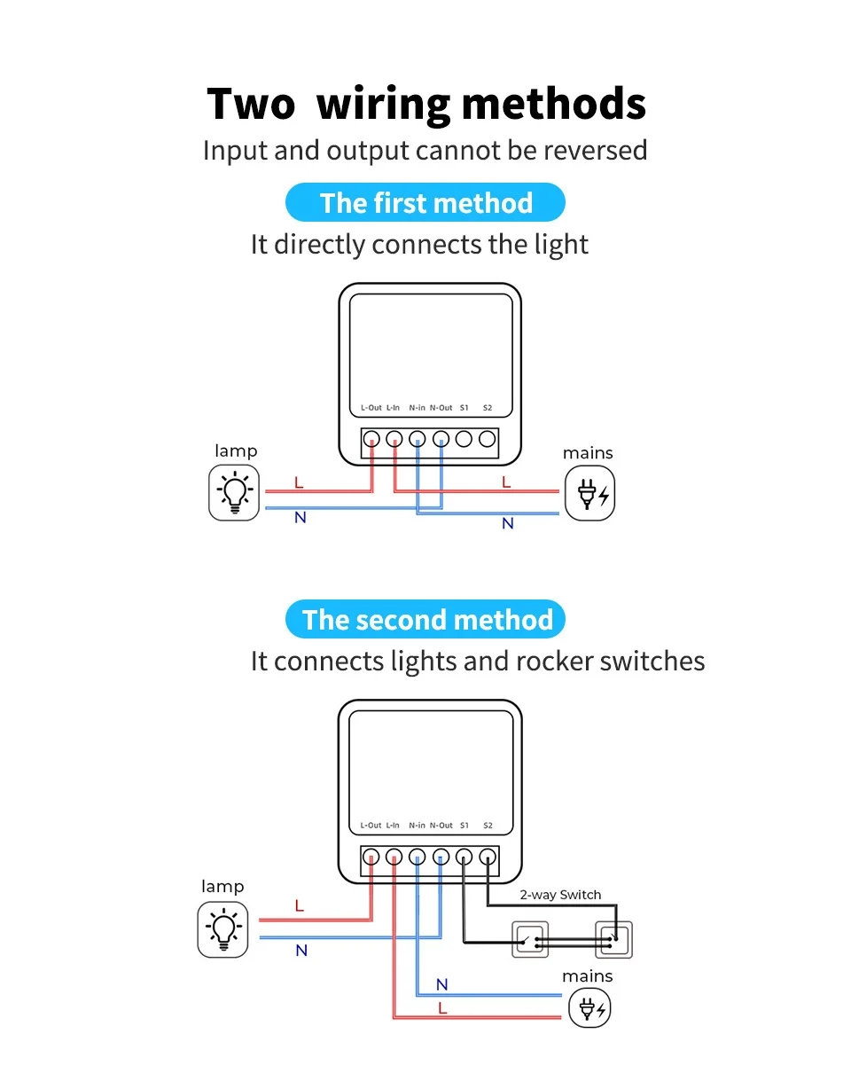 【Facile à installer】Ce mini interrupteur d’éclairage intelligent a une taille compacte de 40 mm x 40 mm x 20 mm et peut être installé dans la plupart des boîtes encastrées standard. Remarque: Veuillez vous assurer que la profondeur de la boîte est supérieure à la profondeur de l’interrupteur et à la hauteur du relais.