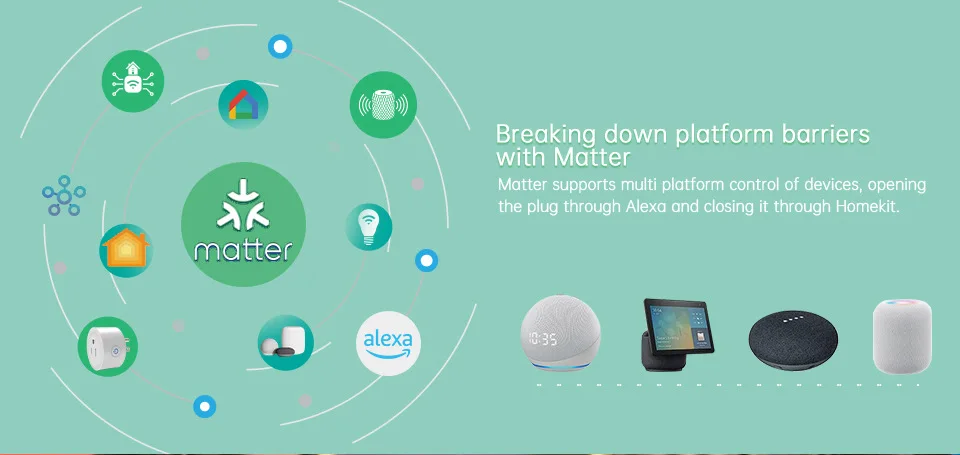 【Configuration facile, un contrôle】Avec Matter, sautez l’étape de téléchargement et d’enregistrement des applications de plusieurs fabricants chaque fois que vous achetez un nouvel appareil. Au lieu de cela, dirigez-vous directement vers les plates-formes de maison intelligente certifiées comme Home, Alexa, Google Home, SmartThings ou AiDot pour contrôler tous vos appareils Matter. 【ASTUCE】 Un hub ou un contrôleur certifié Matter (HomePod, Echo Dot, Nest, SmartThings Hub) est requis pour les plates-formes Home/Alexa/Google Home/SmartThings.