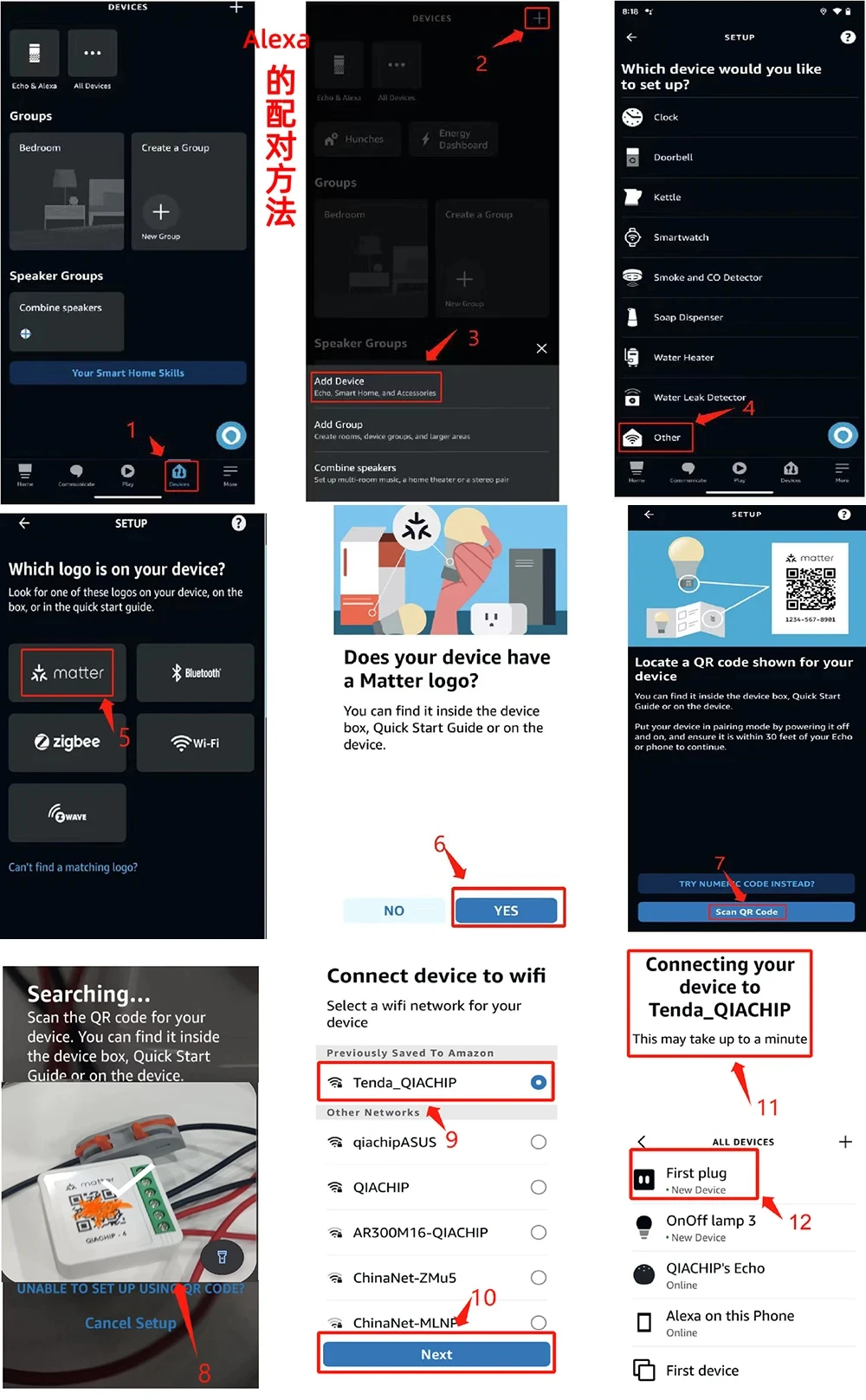 Conseils importants : le commutateur wifi prend uniquement en charge le réseau WiFi 2,4 GHz et IPv6.Un contrôleur certifié Matter (HomePod, Echo, Nest, SmartThings Hub) est requis pour contrôler l’ampoule Matter sur les plates-formes Apple Home/Alexa/Google Home/SmartThings.