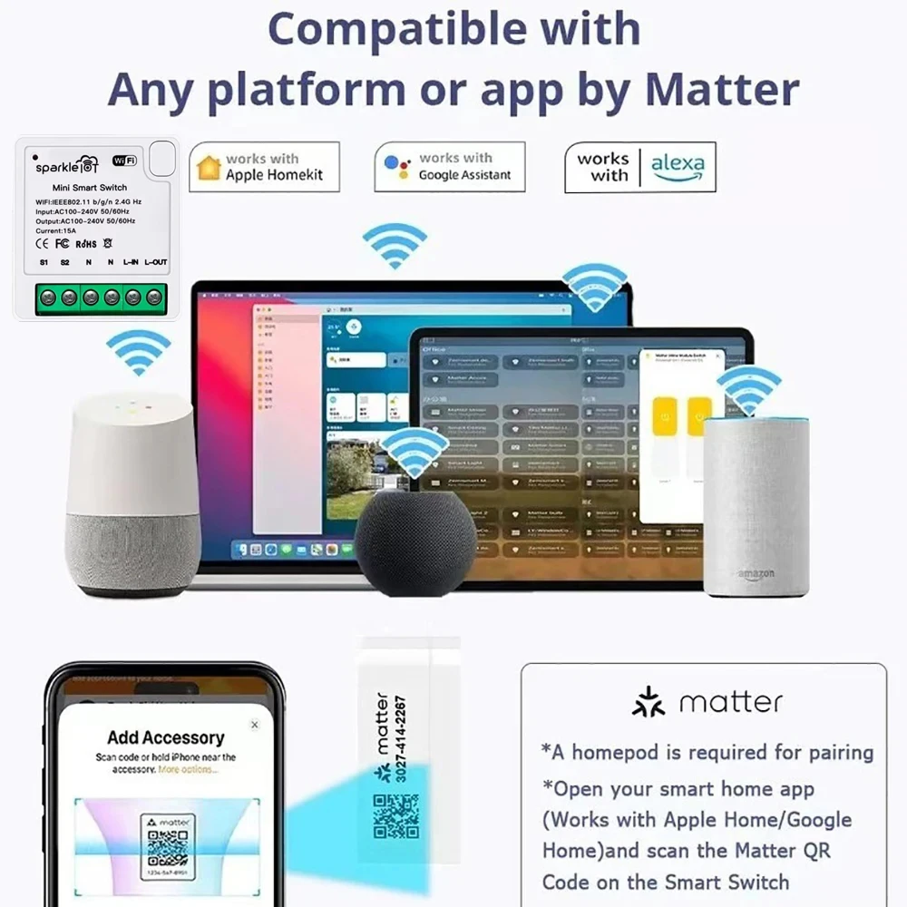 【Control prêt hors ligne】 On dirait que vous définit vos appareils certifiés à matière sur votre LAN, ils s’est capable de communiquer avec chacun d’autres directement, utilisez le protocole Matter.Ce signifie qui si votre connexion Internet domestique va hors ligne, vos appareils certifiés Matter sera encore capable de communiquer et être contrôlés dans votre LAN, sans venir sur les services Internet ou cloud.