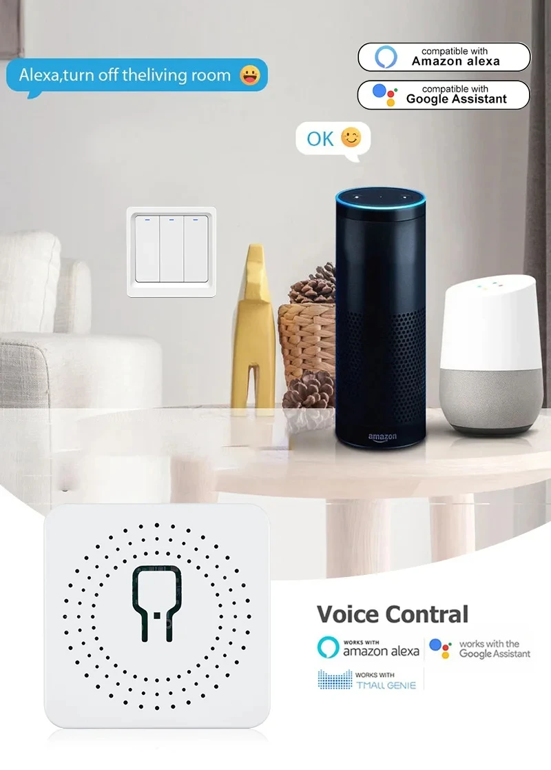 3. Commande vocale : le commutateur wifi DIY fonctionne avec Alexa et Google Home Assistant pour contrôler facilement les appareils avec une simple commande vocale lorsqu’ils sont en déplacement.