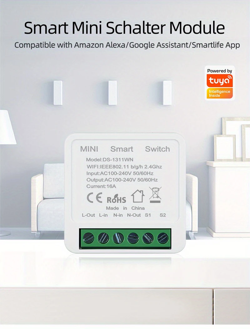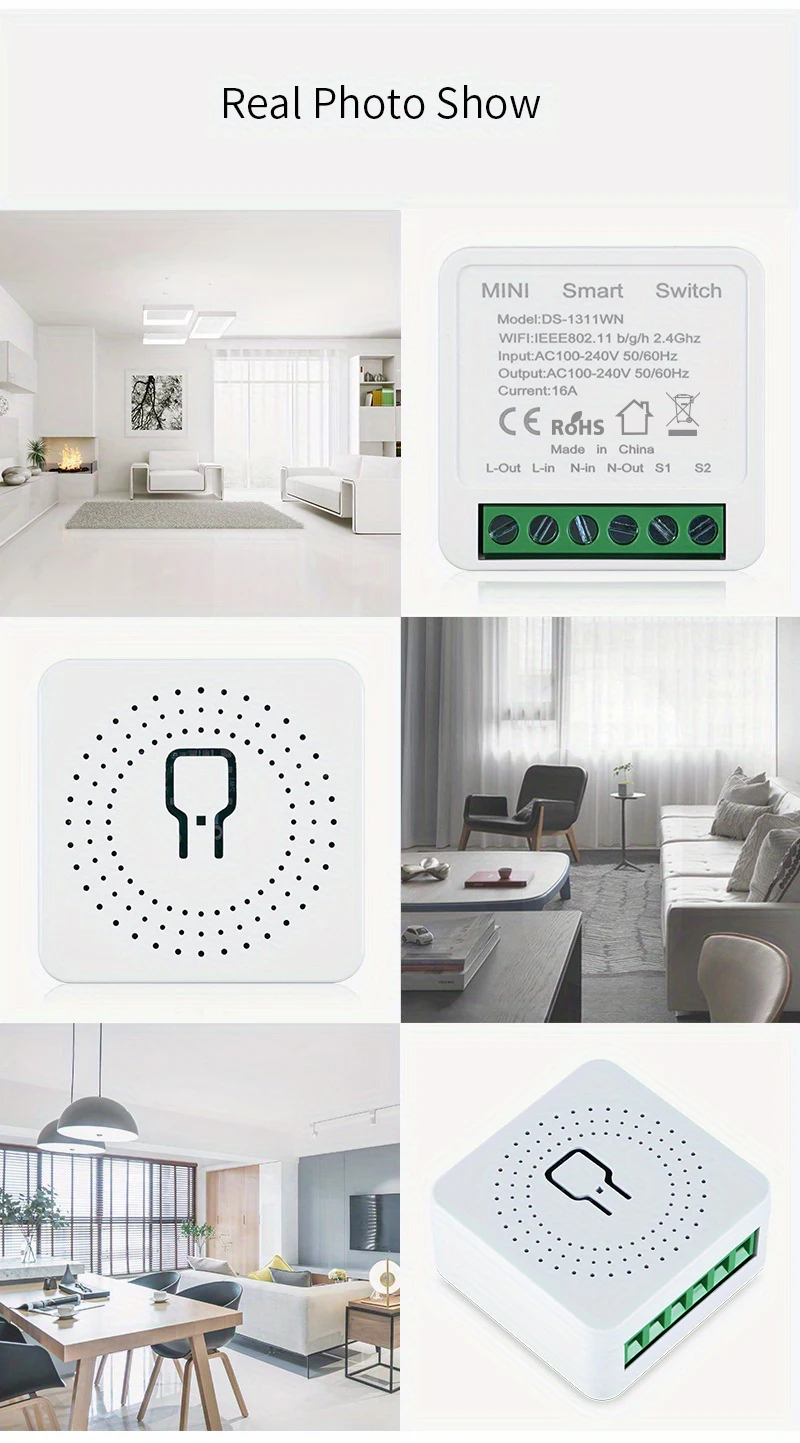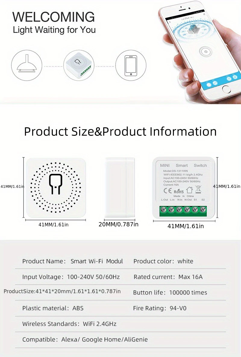 Le module de commutation Wifi intelligent 16A conçu un mini corps 41 * 41 * 22 mm, qui fonctionne avec la plupart des boîtiers, des interrupteurs et des prises. Il n’est pas seulement petit, mais trop puissant.La puissance maximale atteint 1800-3450W, elle peut être utilisée pour la plupart des appareils électroménagers et éclairage.