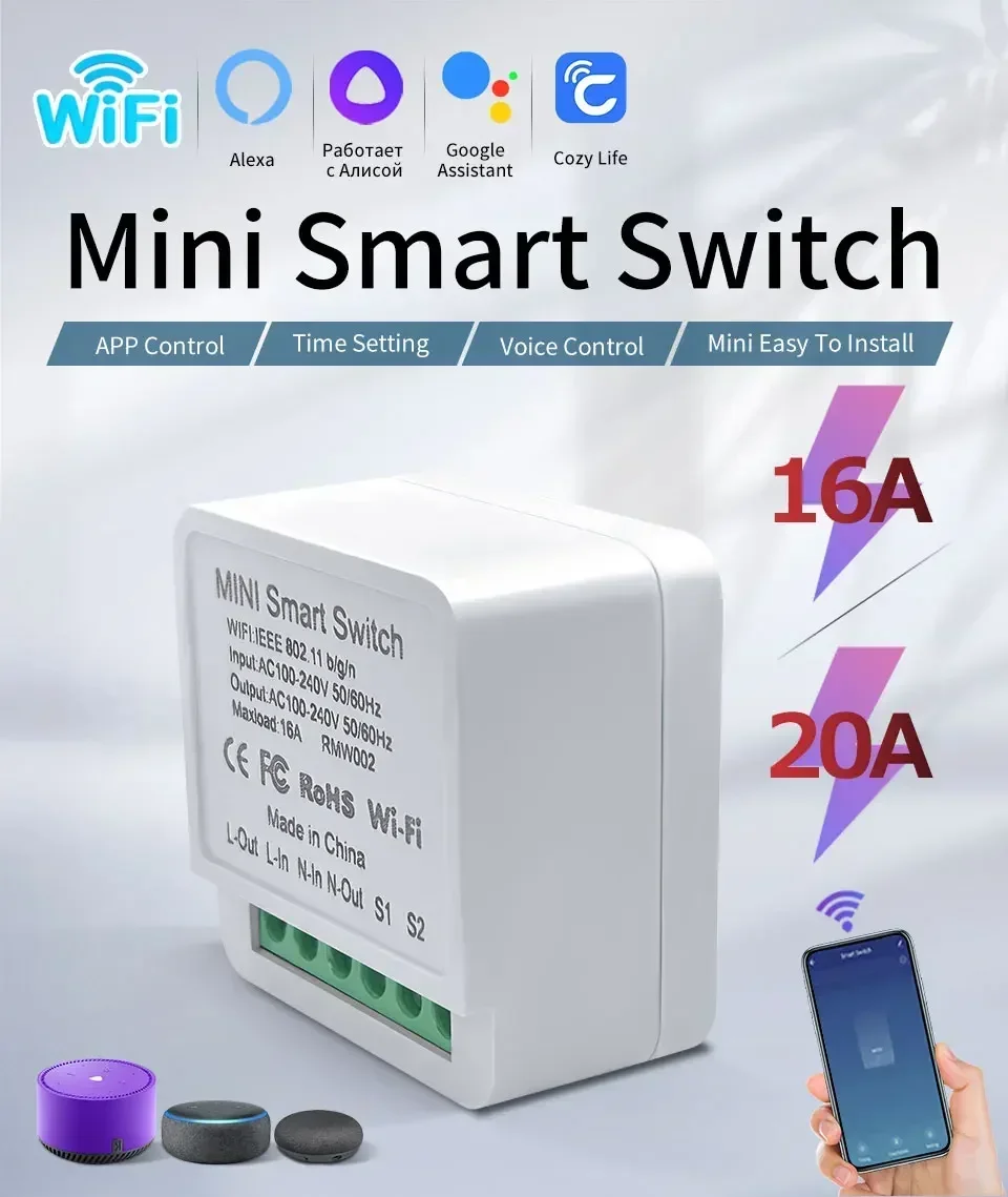 Commutateur intelligent Wifi, relais de disjoncteur à 2 voies, application Cozylife, commande vocale à distance, Mini Module d’automatisation avec Alexa Google Home Alice