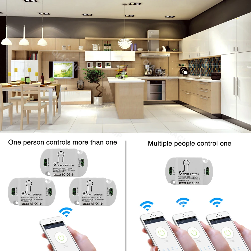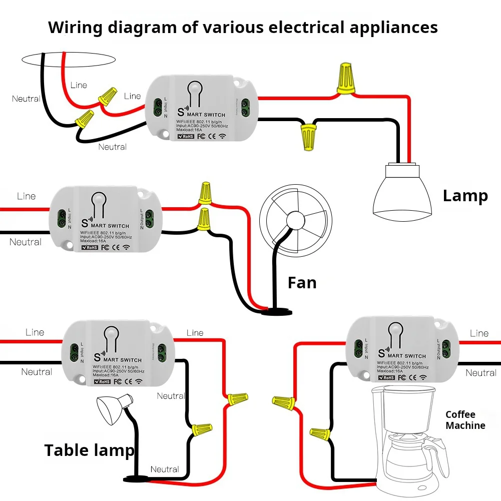 Commutateur intelligent WiFi Tuya avec minuterie et télécommande – Disjoncteur universel pour domotique, fonctionne avec l’application Tuya/Alexa/Google Hom