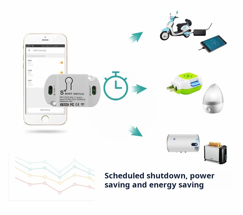 Commutateur intelligent WiFi Tuya avec minuterie et télécommande – Disjoncteur universel pour domotique, fonctionne avec l'application Tuya/Alexa/Google Hom |