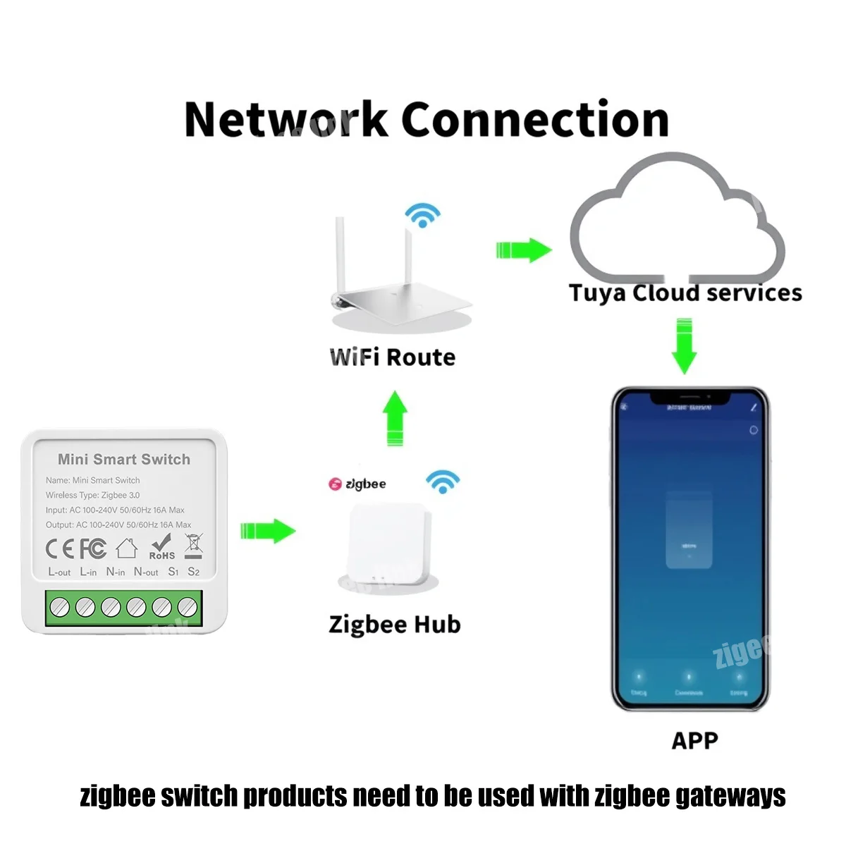 Les produits de commutation zigbee doivent être utilisés avec les passerelles zigbee.