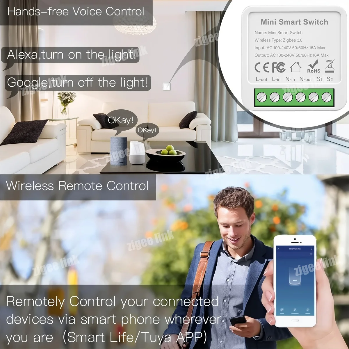 Prend en charge les assistants vocaux tels que Tmall Elf, Alexa, Google Home Assistant, etc., pour réaliser des fonctions telles que des commutateurs.
