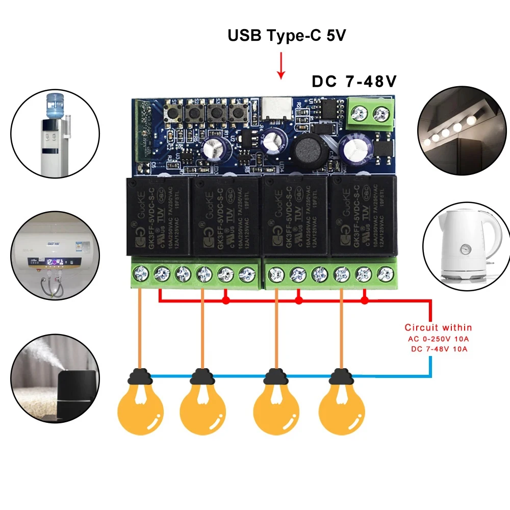 Commutateur Wifi intelligent 4CH, Module de relais intelligent, DC 5V 12V 24V 48V, minuterie de commutateur sans fil, télécommande de téléphone pour EWeLink Google HomeCommutateur Wifi intelligent 4CH, Module de relais intelligent, DC 5V 12V 24V 48V, minuterie de commutateur sans fil, télécommande de téléphone pour EWeLink Google Home