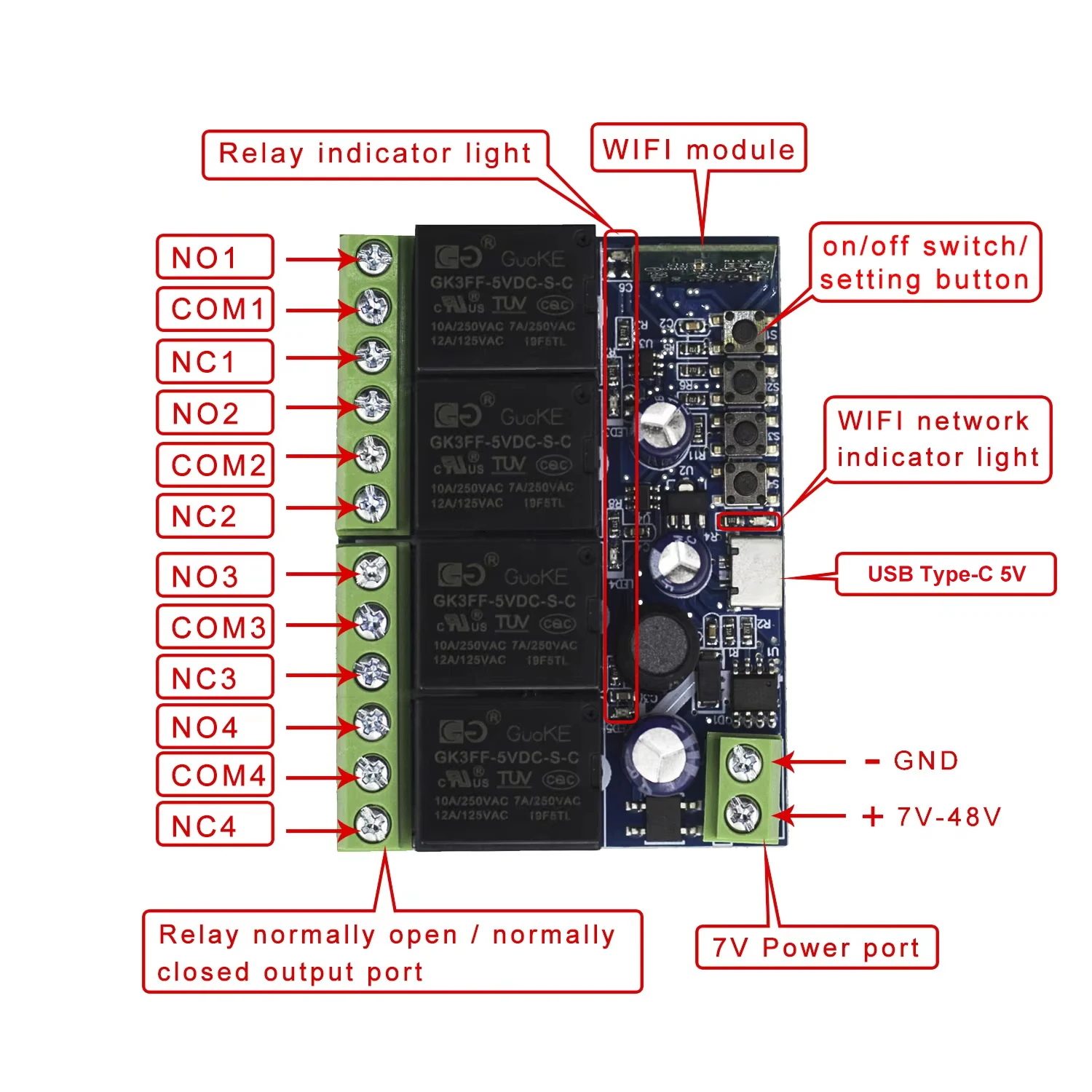 3.Tension de fonctionnement :USB Type-C 5 V/CC 7V-48V