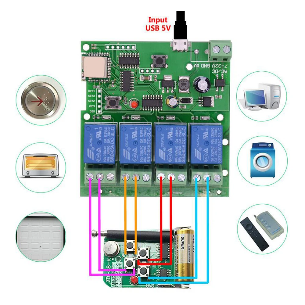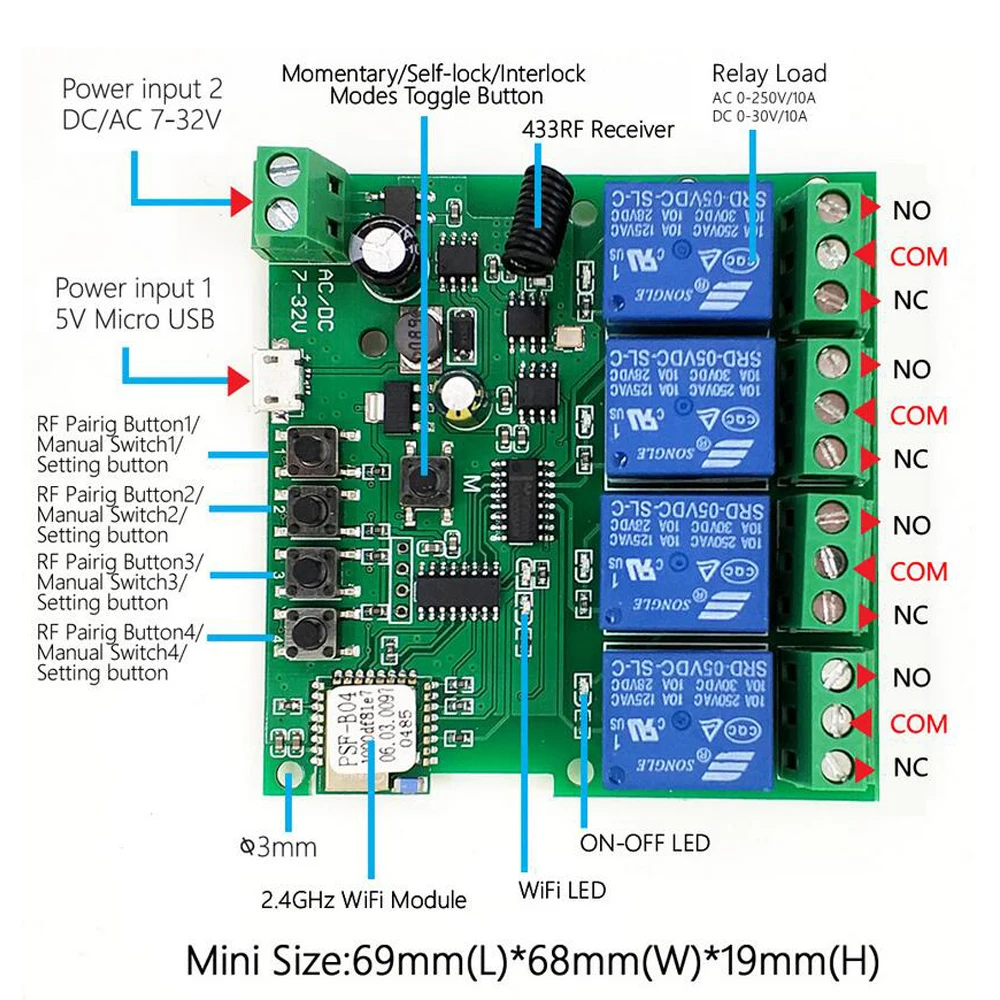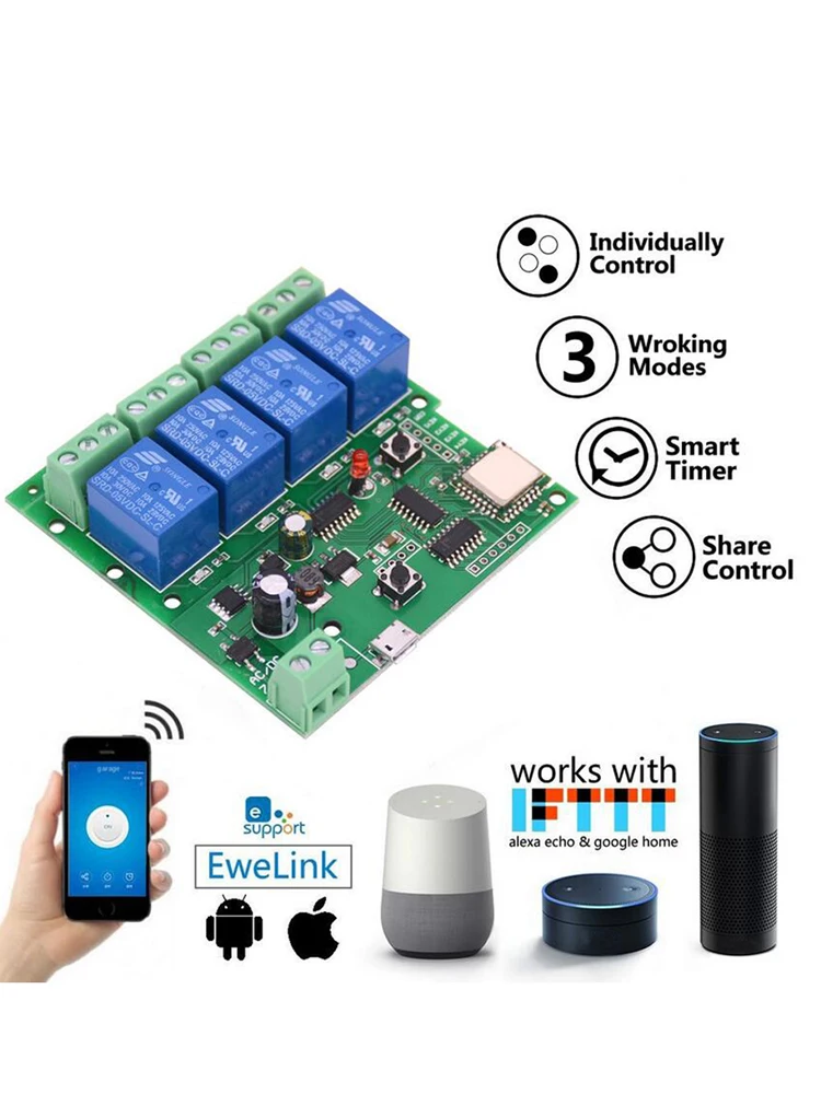 Commutateur WiFi sans fil Smart Life avec application Ewelink, télécommande, verrouillage automatique, relais à 4 voies, Module de commutation intelligent pour la domotique