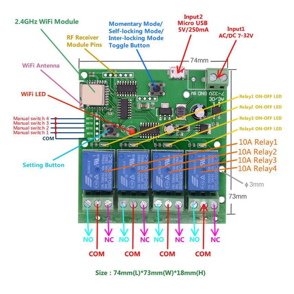 Remarque : Les relais sont des commutateurs sans sortie, l’entrée d’alimentation (AC/DC) juste pour le PCBA.
