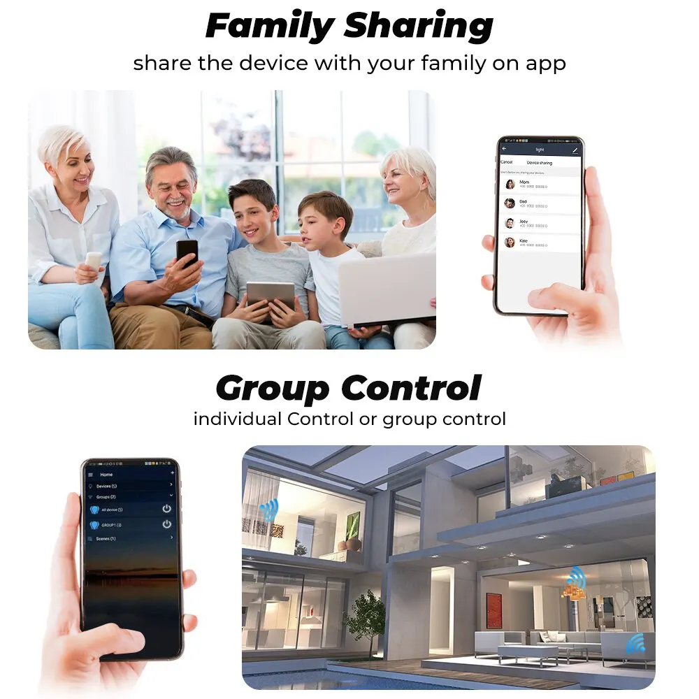 -5-Partage familial: un appareil peut être partagé avec différents membres de la famille, ce qui signifie qu’un ID est capable de contrôler plusieurs appareils, ou que plusieurs utilisateurs peuvent contrôler un appareil. Contrôlez votre maison intelligente avec les membres de votre famille ou vos amis.