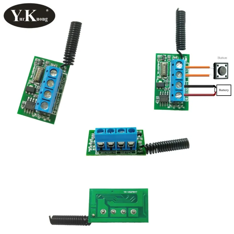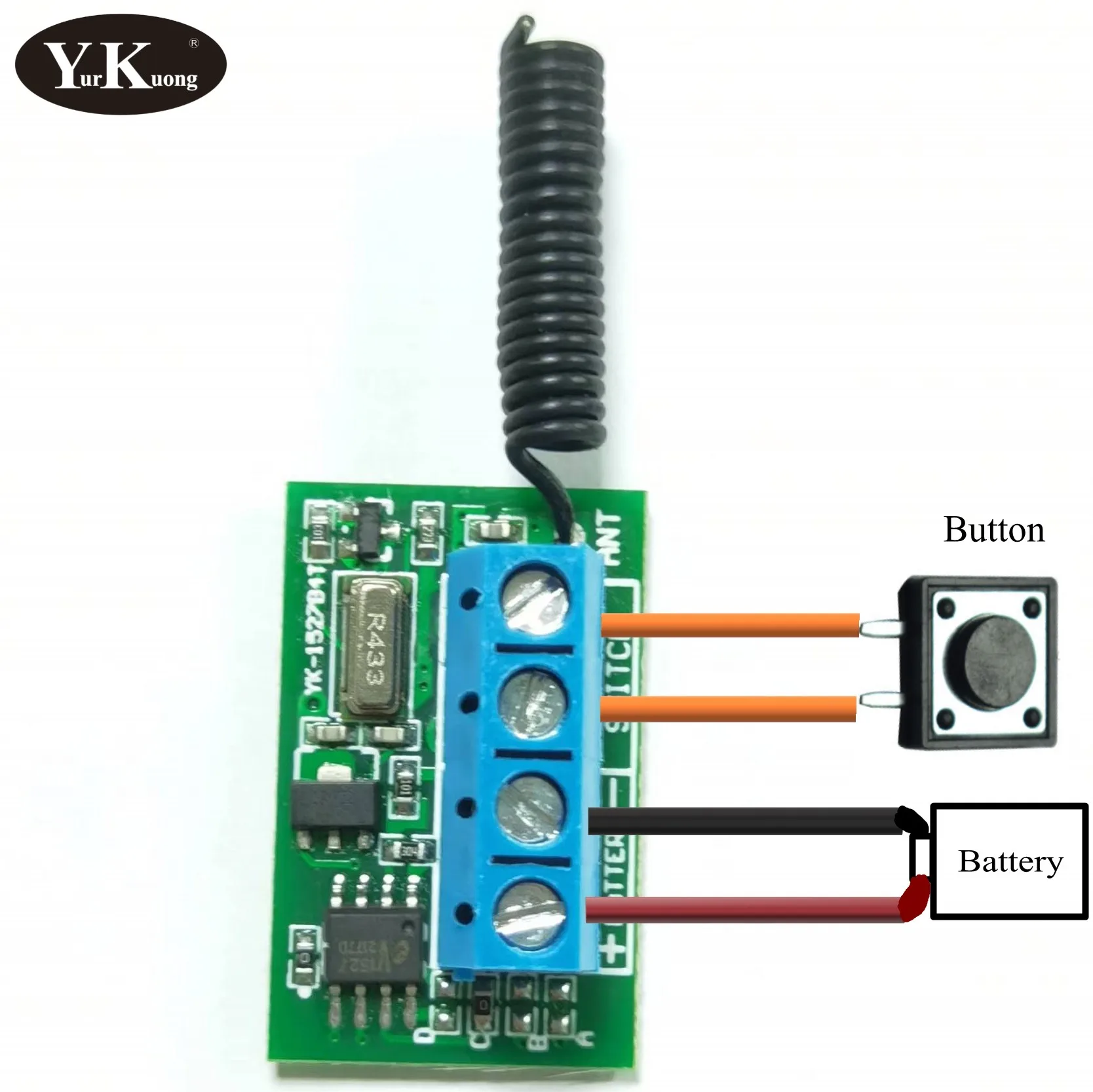 Il s’agit d’une carte émetteur RF sans boîtier ni bouton, il suffit de saisir une alimentation DC3V-DC12V pour elle, elle transmettra le signal, c’est un module micro-émetteur pour l’apprentissage du récepteur de code.Le module émetteur peut être contrôlé par un détecteur de fumée ou d’autres capteurs ou microcontrôleurs.