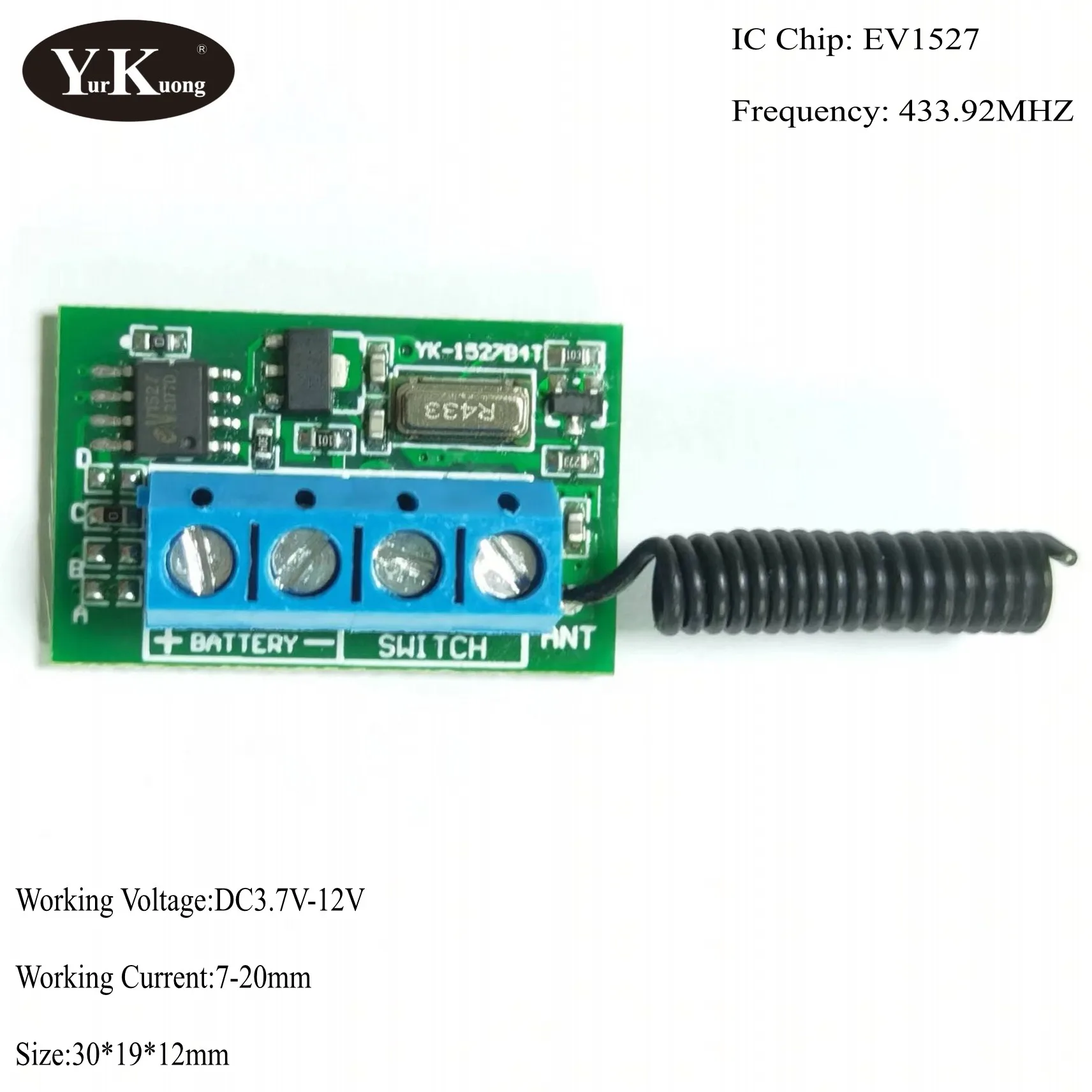 Il est une carte émetteur RF sans boîtier ni bouton, d’entrée juste de l’alimentation DC3V-DC12V pour cela, transmettez le signal, c’est un module micro-émetteur pour récepteur de code d’apprentissage.Le module émetteur peut être contrôlé par détecteur de fumée ou d’autres capteurs ou microcontrôleur.