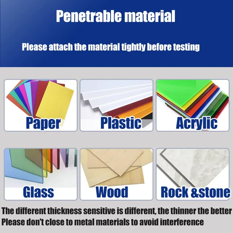 7.Distance tactile : la densité d’épaisseur différente est différente, le plus mince, le meilleur Veuillez ne fermer pas des matériaux métalliques pour éviter l’interférence