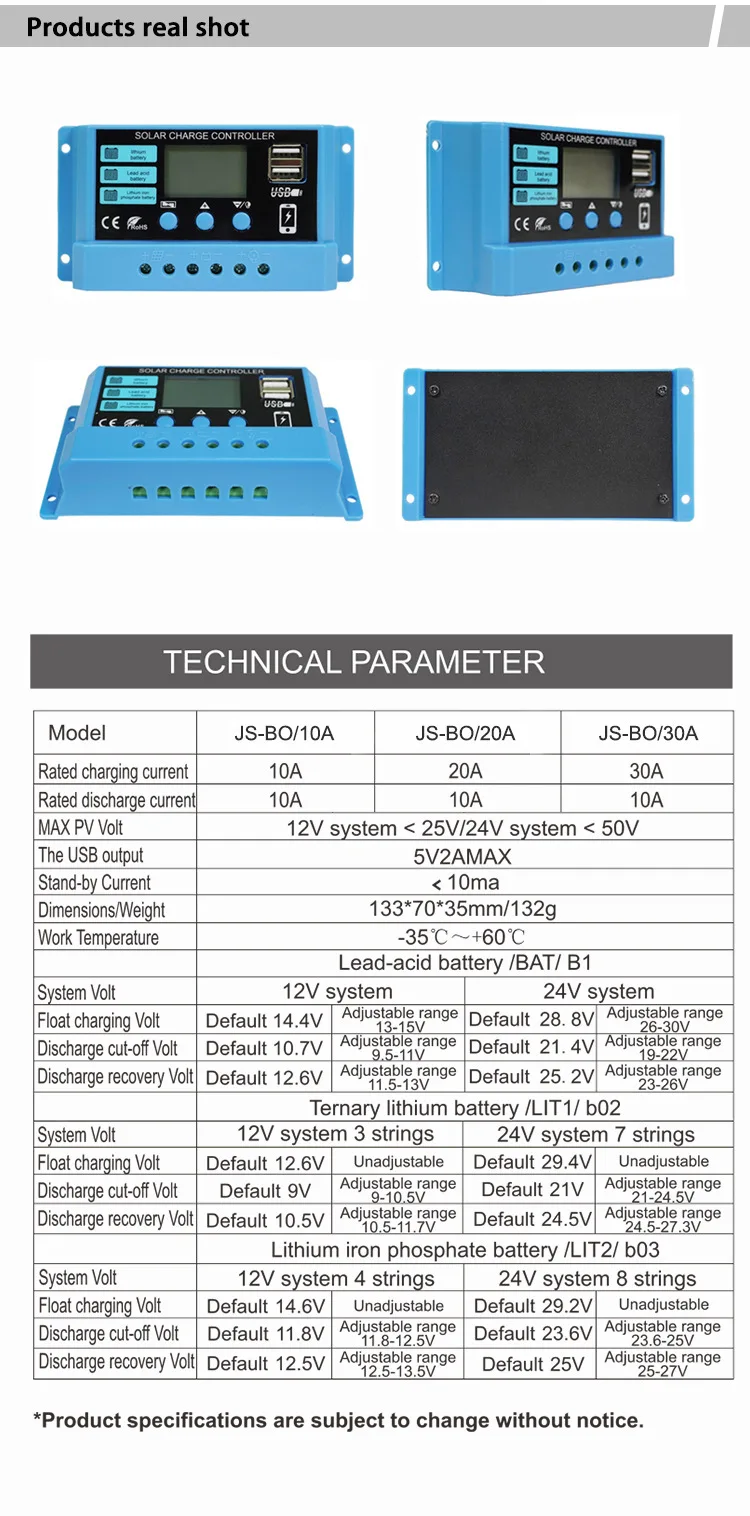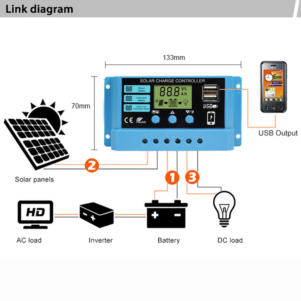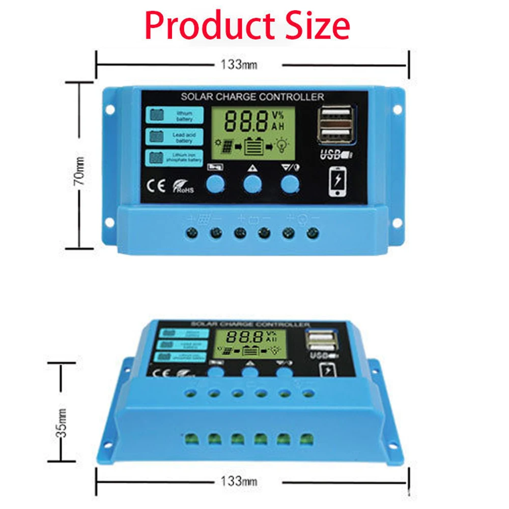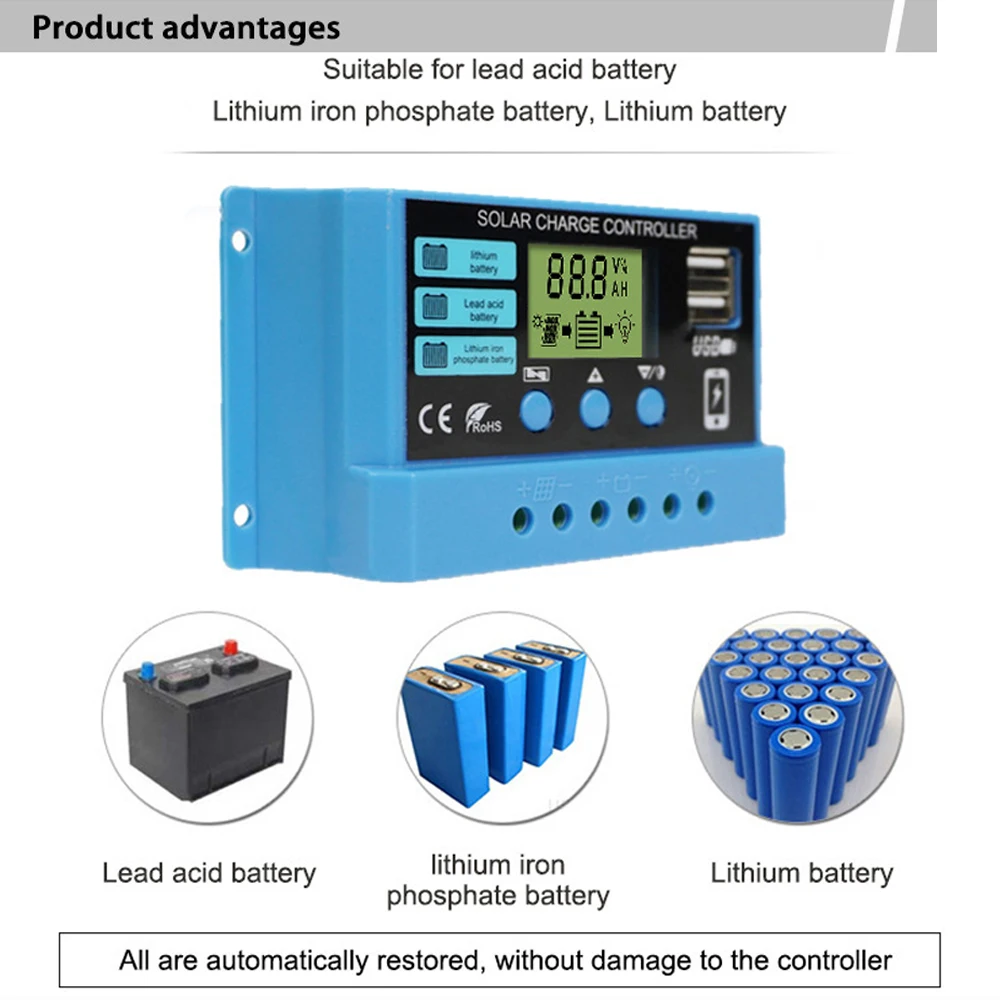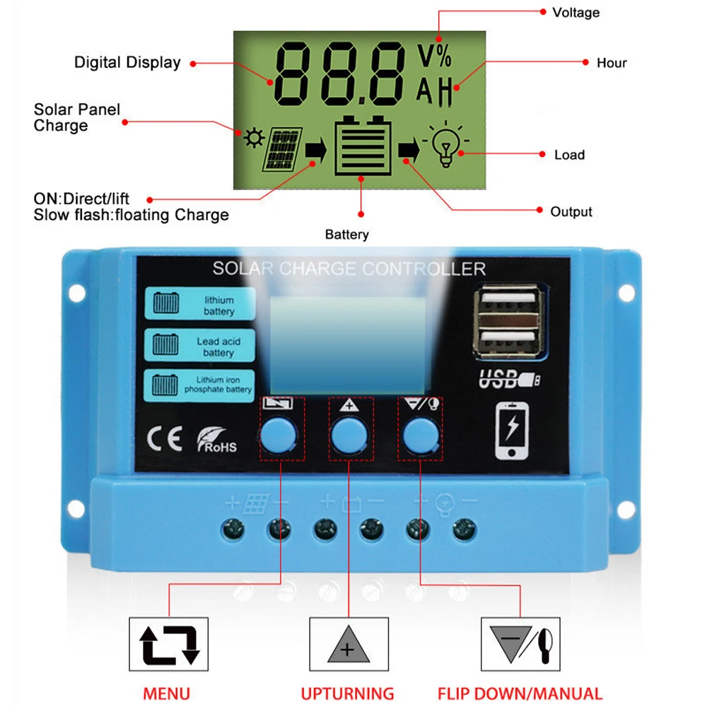 Contrôleur de panneau solaire, régulateur de Charge de batterie, 2USB 12V/24V 10A/20A/30A LCD PWM, système de contrôle de lampadaire photovoltaïque