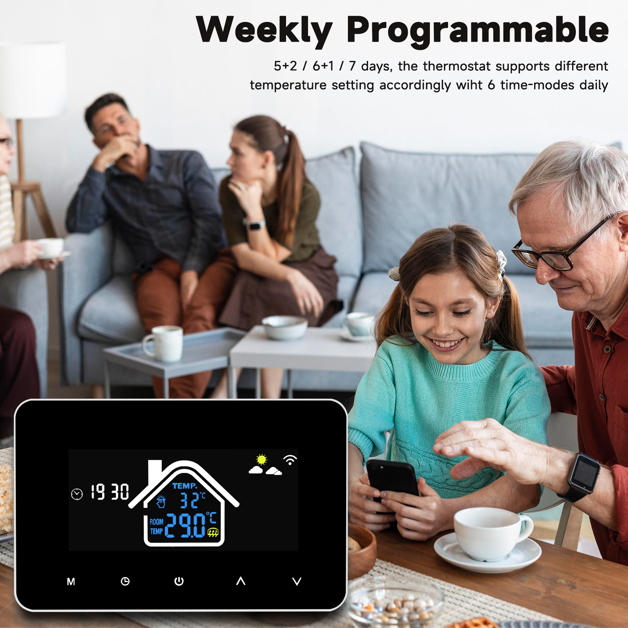 【Programmable】Le thermostat prend en charge différents réglages de température en conséquence avec 6 modes de temps par jour.