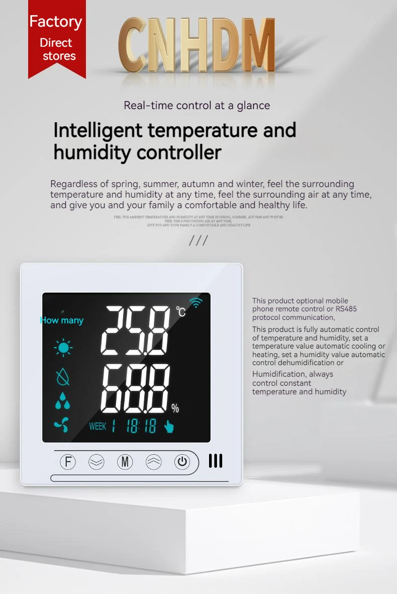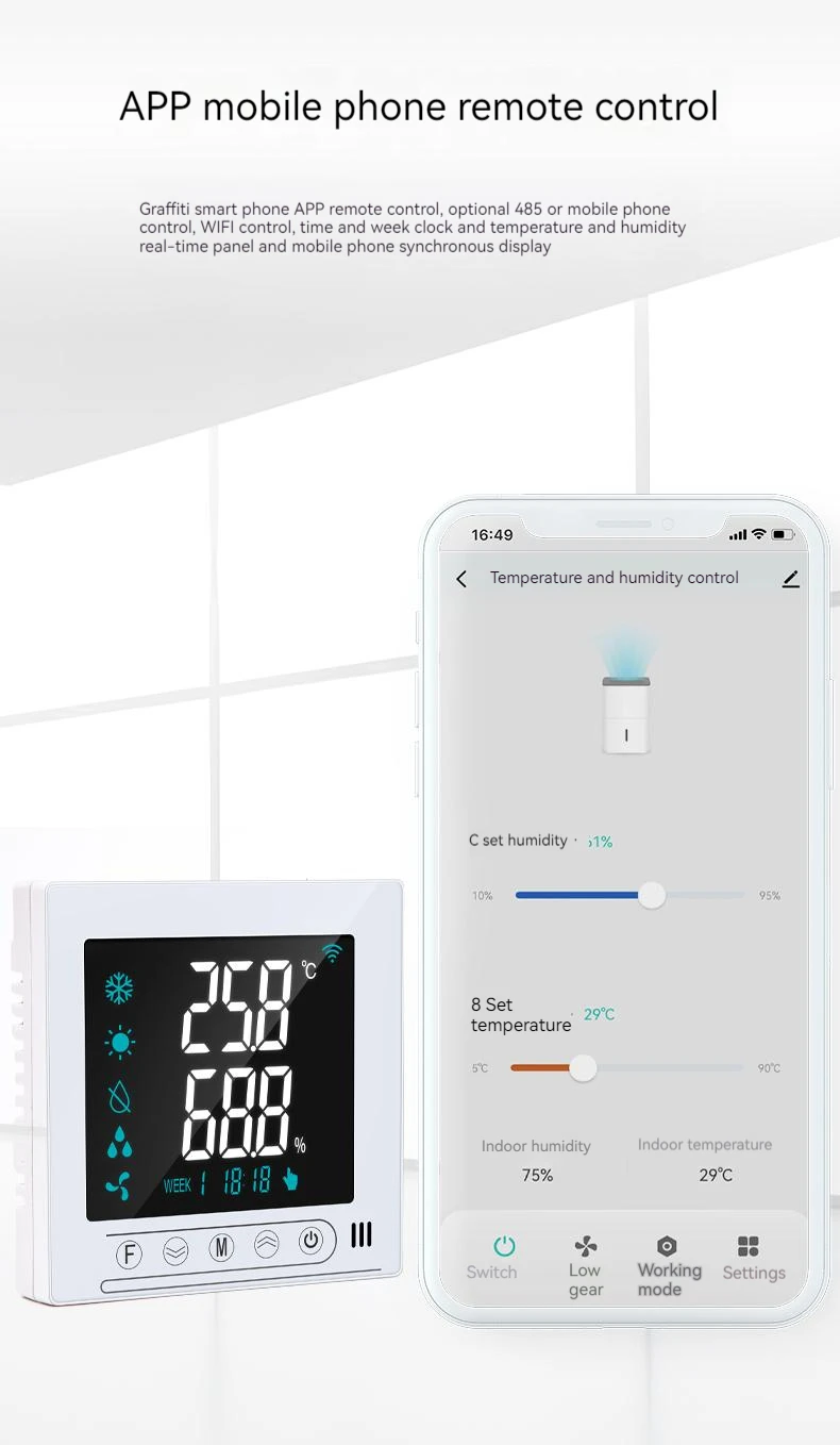 Contrôleur intelligent de température et d’humidité pour une réglage automatique de la vanne du ventilateur, équipement de déshumidification, RS485/TUYA WIFI