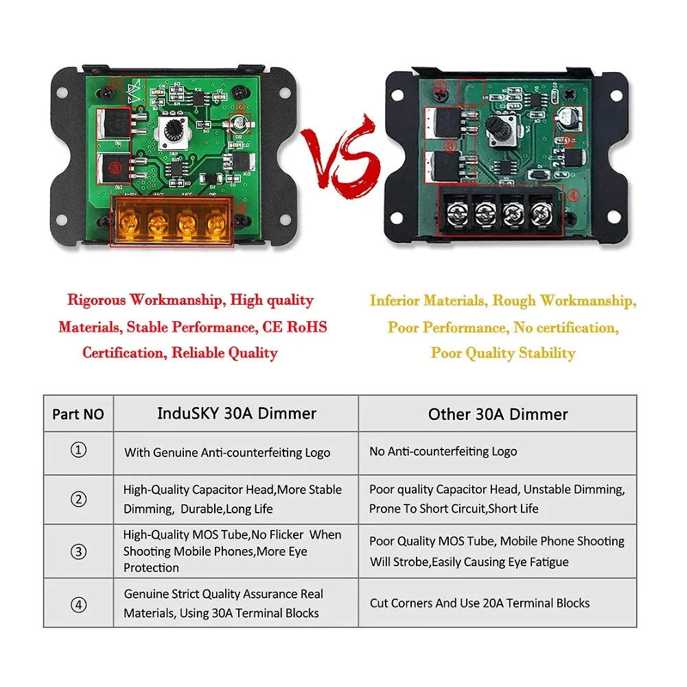 1. Variateur de luminosité réglable: 0 ~ 100% luminosité réglable. Ajustez la lumière douce et stable, pas de scintillement.