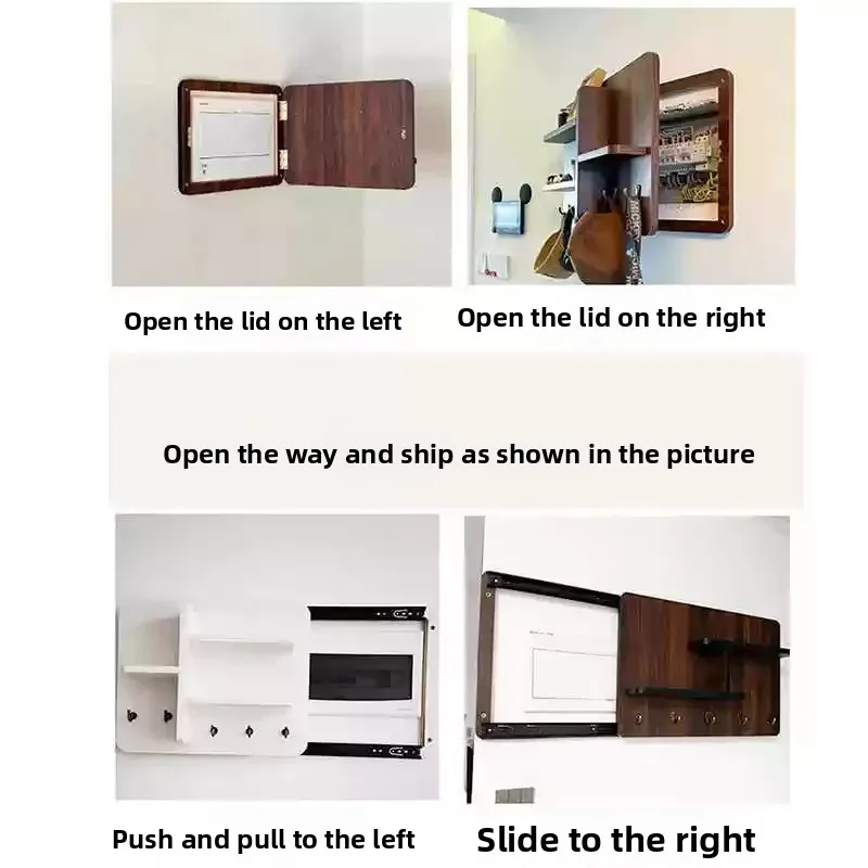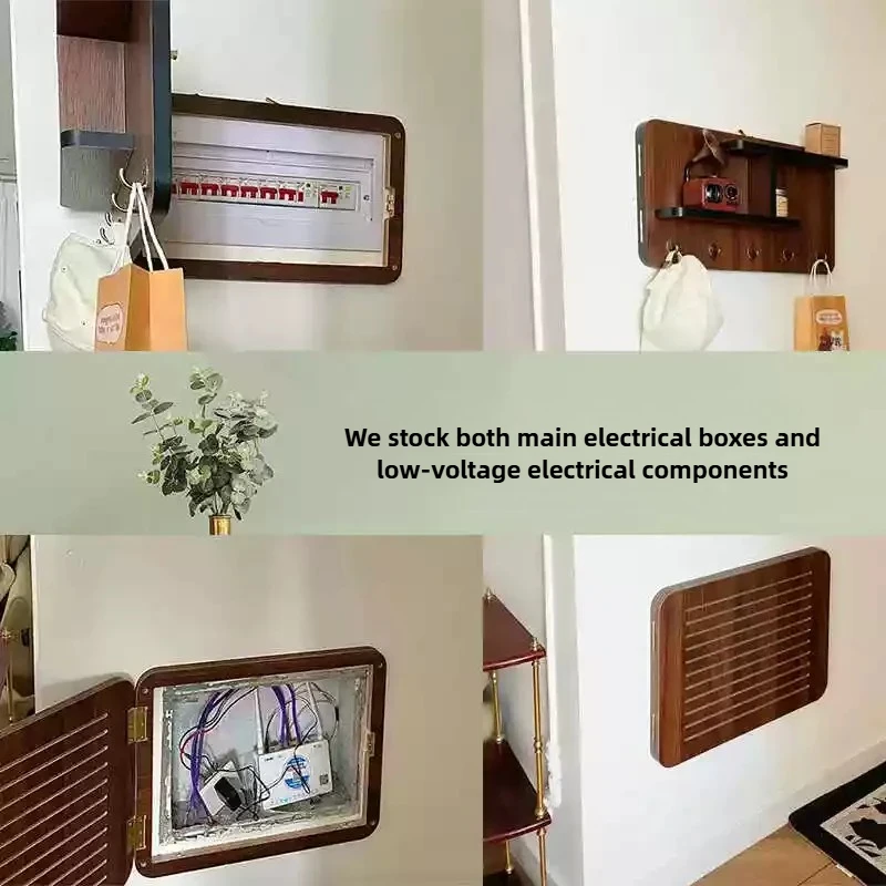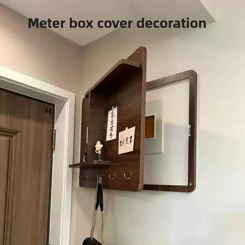 Couvercle décoratif de boîte de compteur électrique avec étagère de rangement.
