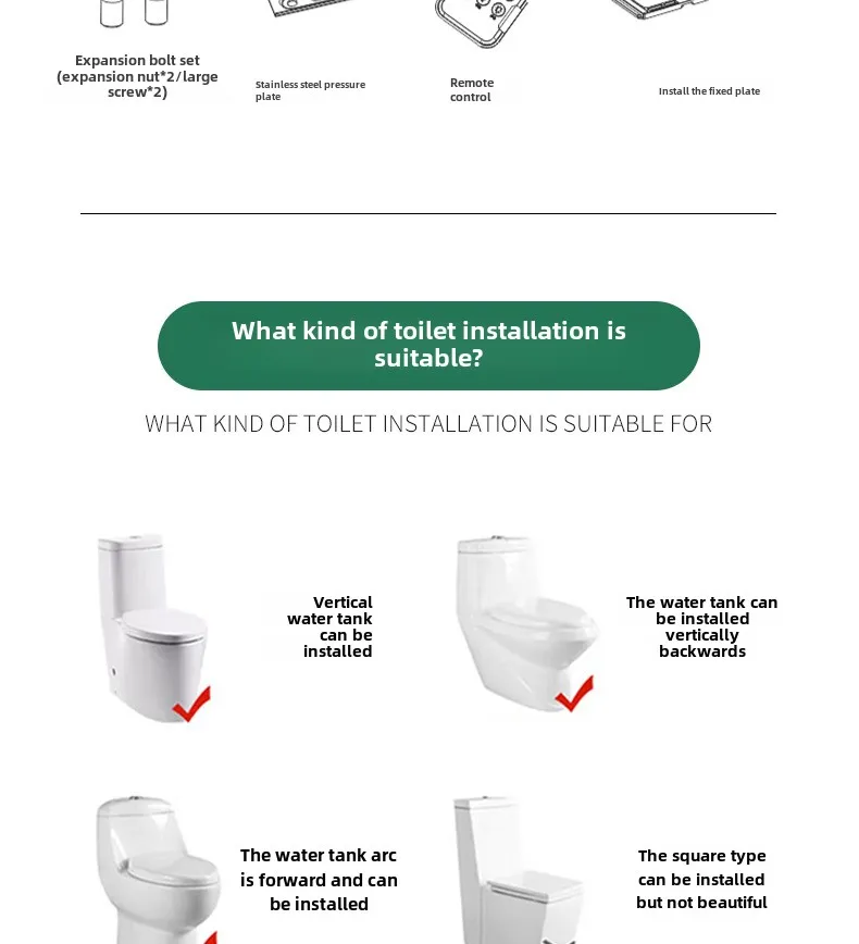 Les sièges des toilettes sont non conviennent aux toilettes carrées