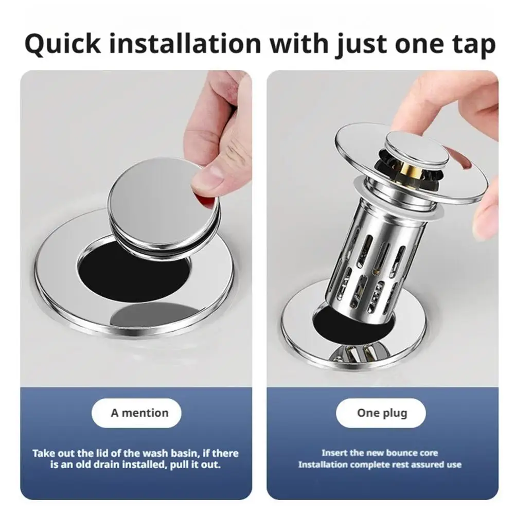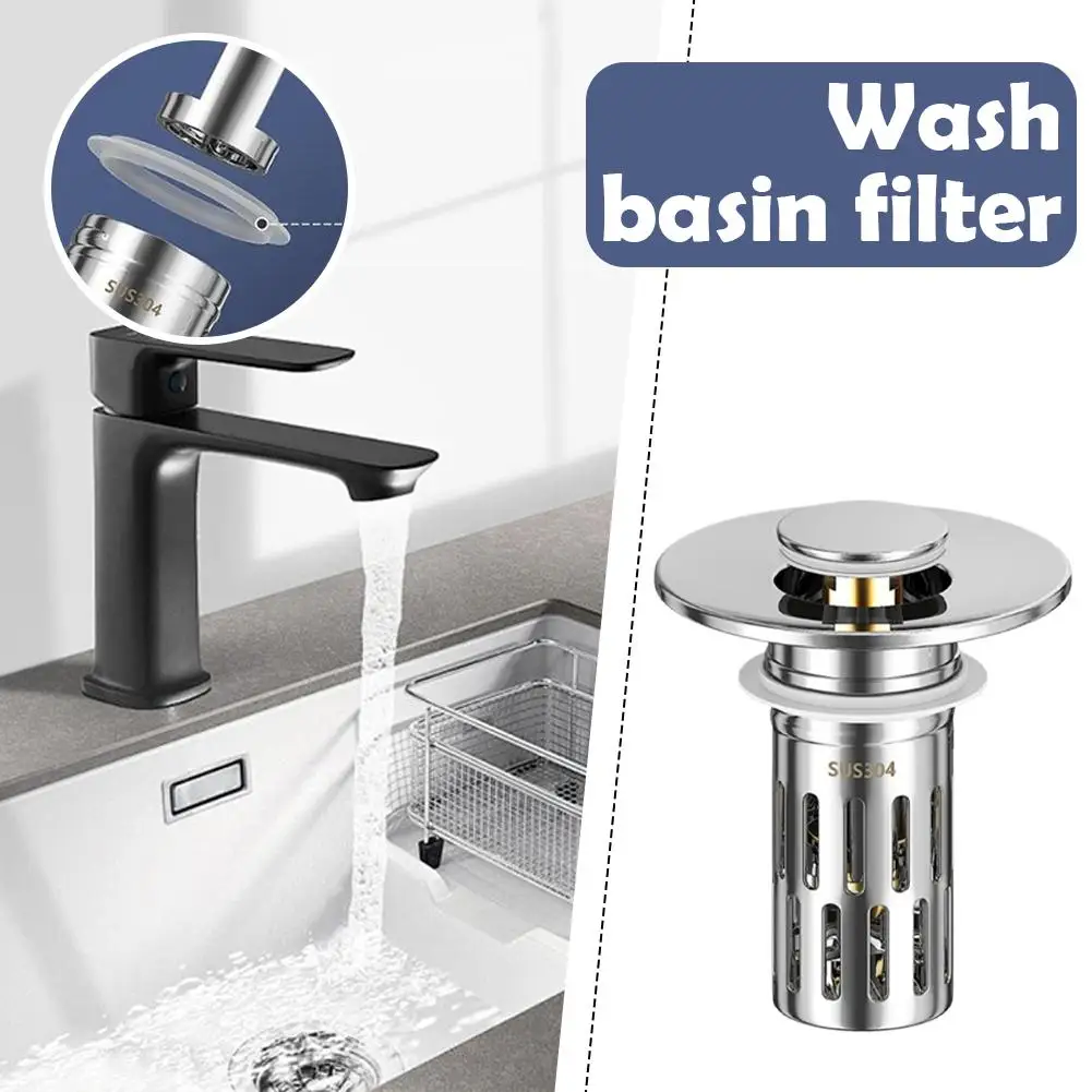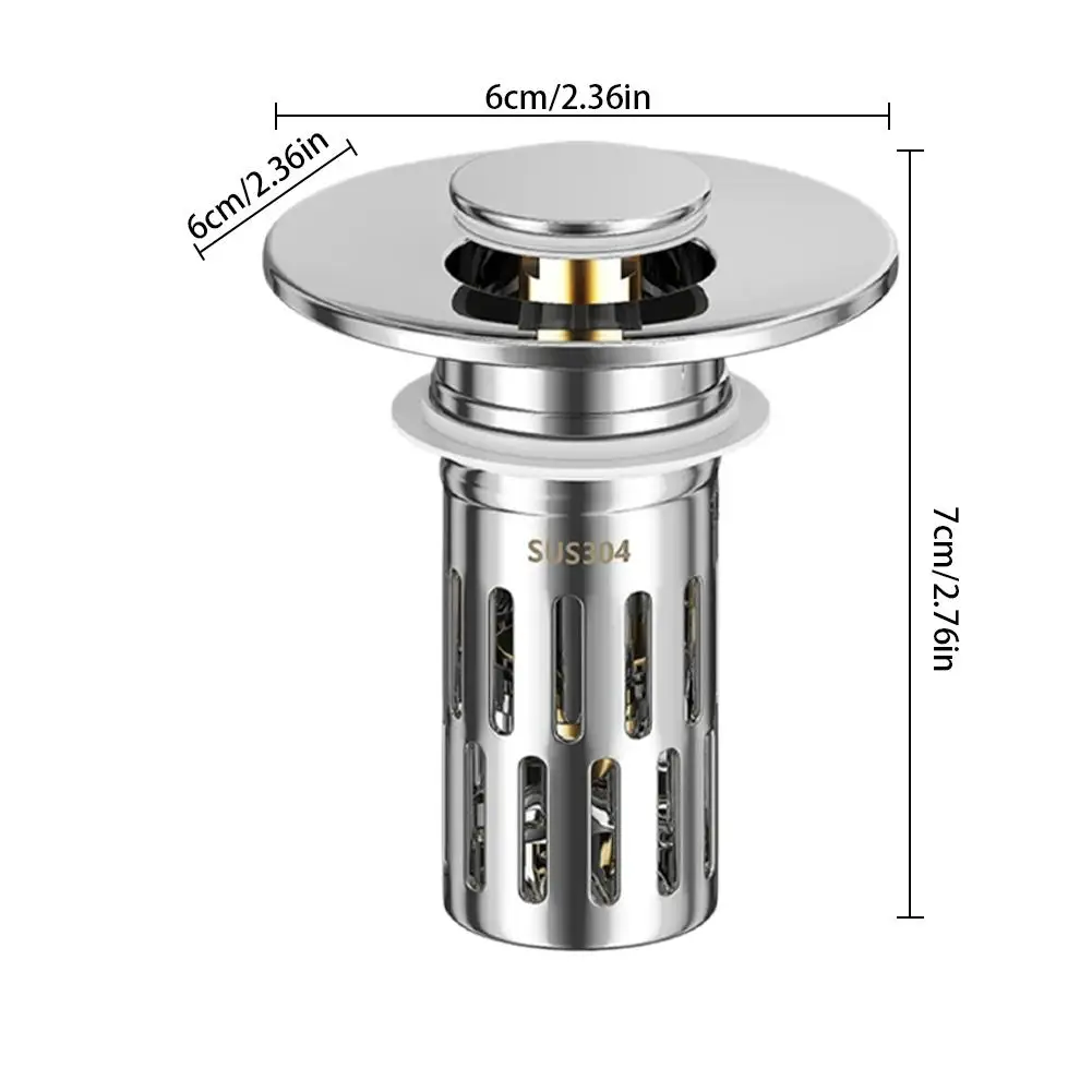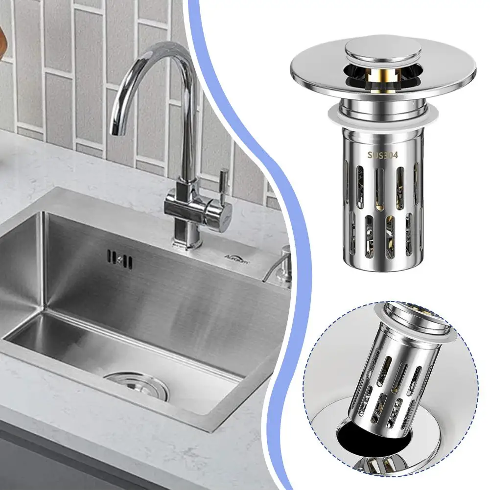 Drain d'évier de salle de bains en acier inoxydable, noyau de rebond Pop-Up, filtre de vidange de lavabo, collecteur de cheveux, filtre d'évier de douche, outils de bouchon de bain