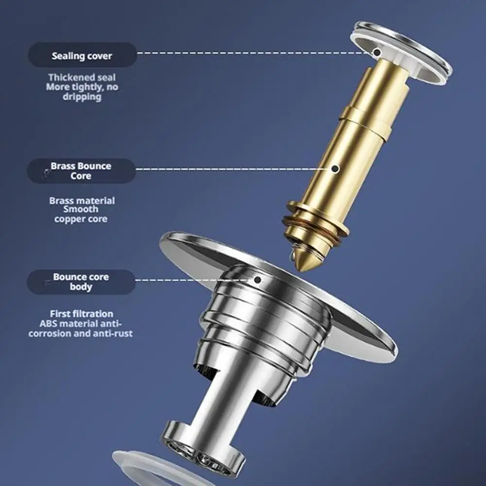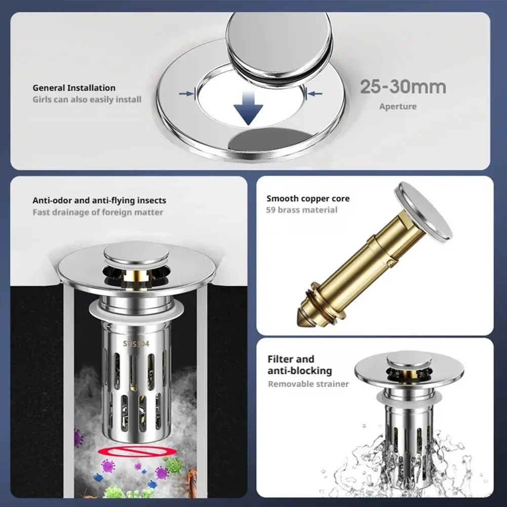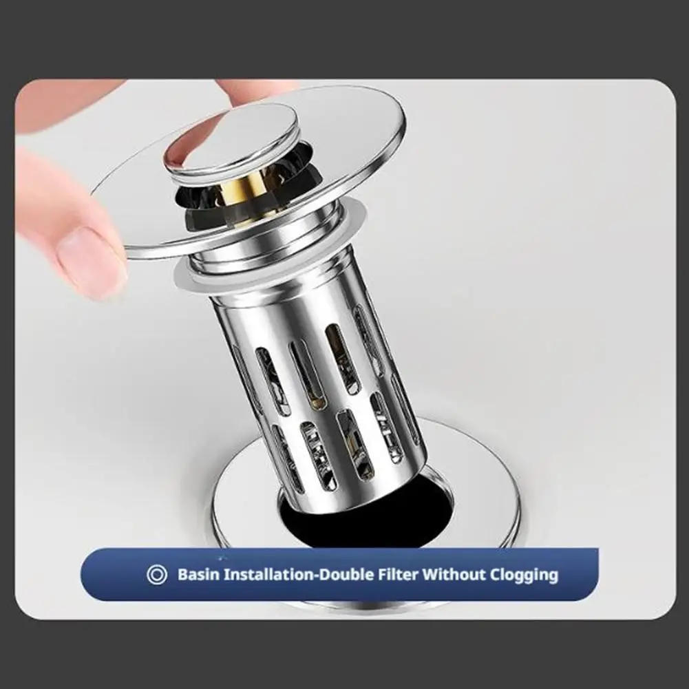 Drain d’évier de salle de bains en acier inoxydable, noyau de rebond Pop-Up, filtre de vidange de lavabo, collecteur de cheveux, filtre d’évier de douche, outils de bouchon de bain