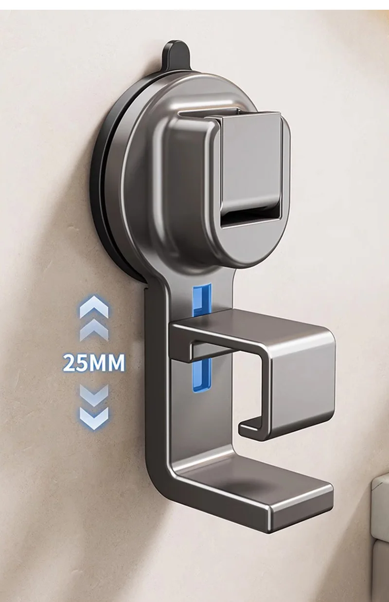 2.Retirez simplement le film protecteur de la ventouse, essuyez-le, choisissez un mur lisse et appuyez : la conception à pousser pour adsorption assure un maintien sûr sans aucun outil ni perçage nécessaire.