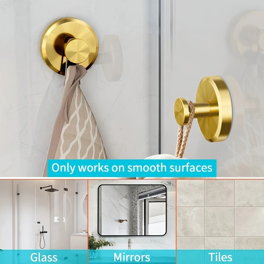 Crochets à ventouse dorés – Installation facile à l'eau pour la douche, la salle de bain, la cuisine et plus encore – Peut contenir jusqu'à 15 lb – Parfait pour les serviettes |