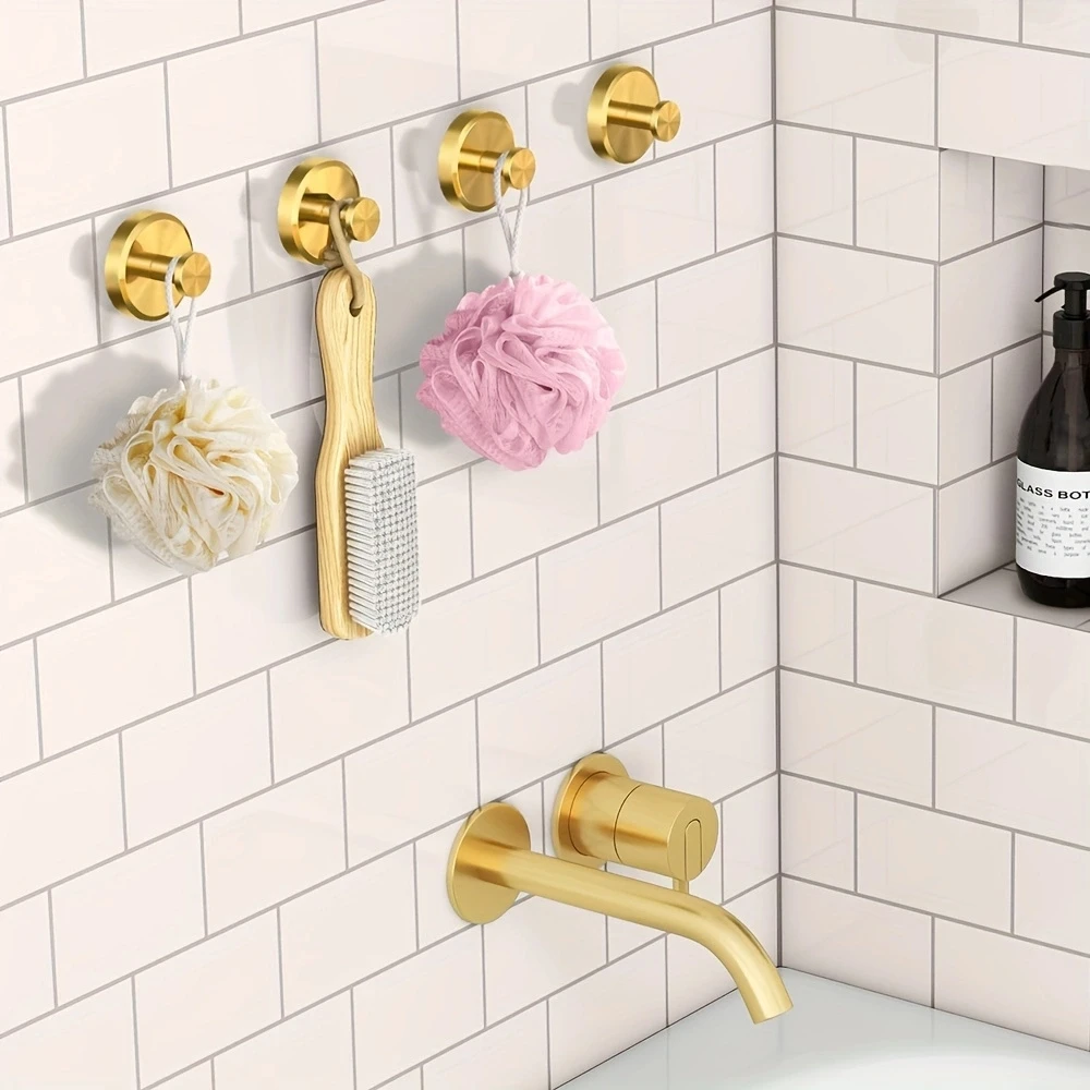 "Les crochets à ventouse dorés sont un vrai coup de coeur ! J'ai pu les installer très facilement dans ma douche et ma cuisine, et ils tiennent parfaitement bien. Leur capacité de 15 lb est plus que suffisante pour y accrocher mes serviettes et autres accessoires. Le seul bémol est que les ventouses se salissent assez rapidement, mais un petit coup d'éponge et ça redevient comme neuf. Globalement, un excellent produit qui remplit parfaitement sa fonction."